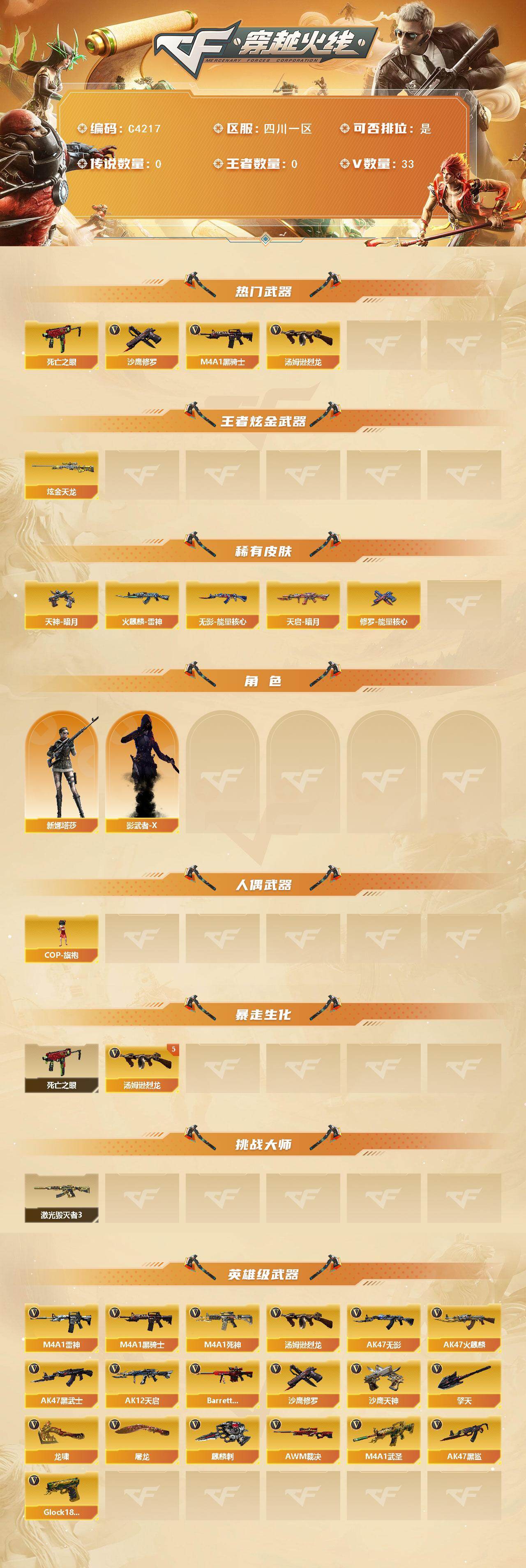 【C4217】四川一区-33V-0王者-1炫金