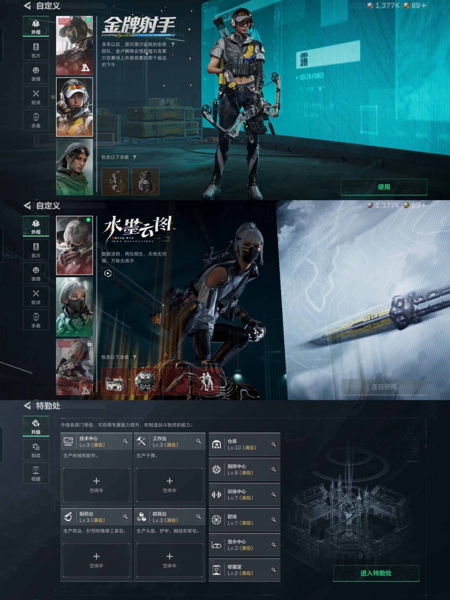 MSJ3359【212M资产 8干员皮 3刀皮 龙牙 北极星 信条 特勤处满级 水墨云图 蚀金玫瑰 32传说枪皮】三端互通-总价值212M-哈夫币1377k-烽火地带等级60-烽火地带段位三角洲巅峰【干员皮肤】骇爪-水墨云图 红狼-蚀金玫瑰 红狼-电锯惊魂 无名-夜鹰 露娜-金牌射手 露娜-黑·天际线 深蓝-不破誓约 蜂医-送葬人·无题密令【近战武器】黑鹰 北极星 龙牙 信条【枪皮】AKS-74U突击步枪-蛇纹涂装 AKS-74U突击步枪-蛇纹涂装 AKS-74U突击步枪-监察 M7战斗步枪-噬