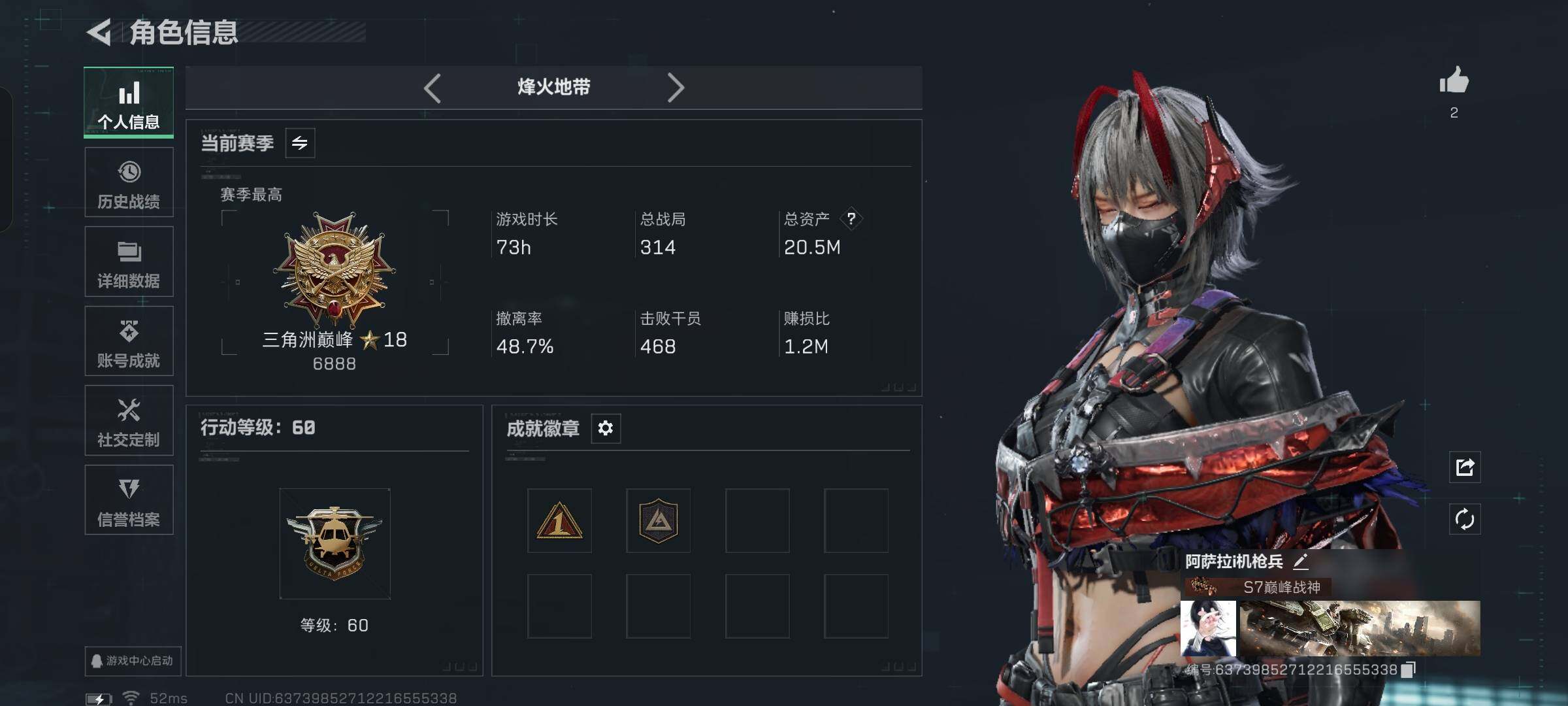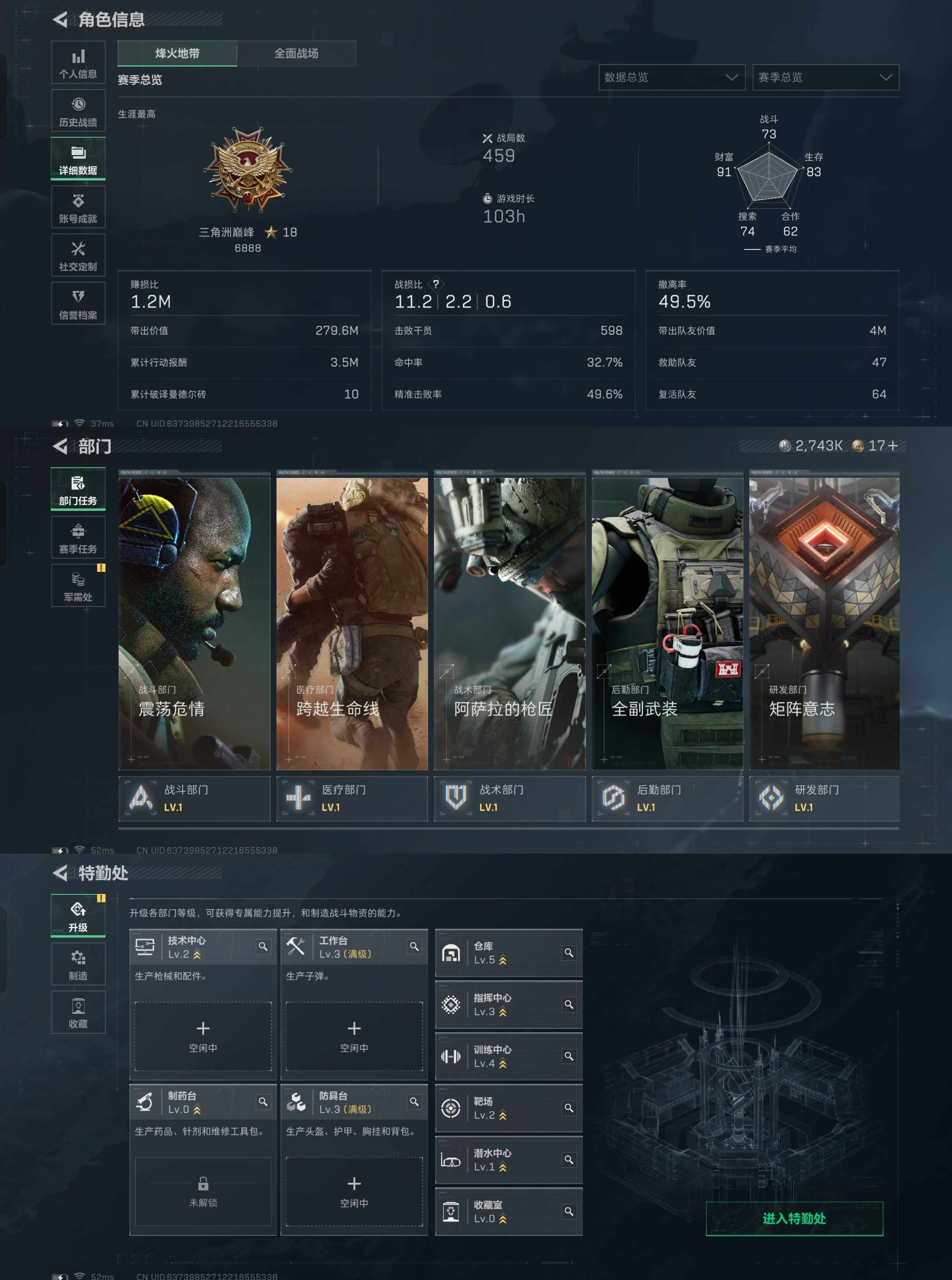 aa12,皮肤骇爪红皮电锯惊魂,总资产20.5M哈夫币2743K,三端互通烽火满级,3橙枪,2金吊饰,仓库5级训练中心4级靶场2级
