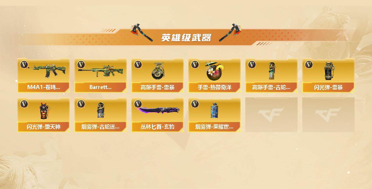 【热门武器】:传说灵眸,HK417-朱雀,金色蔷薇-古蛇迷踪,修罗-古蛇迷踪,M4A1-黑骑士,汤姆逊-烈龙*5,羊驼玩偶