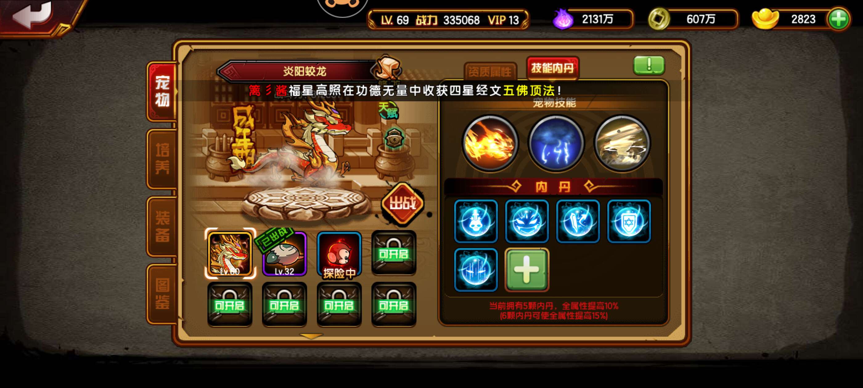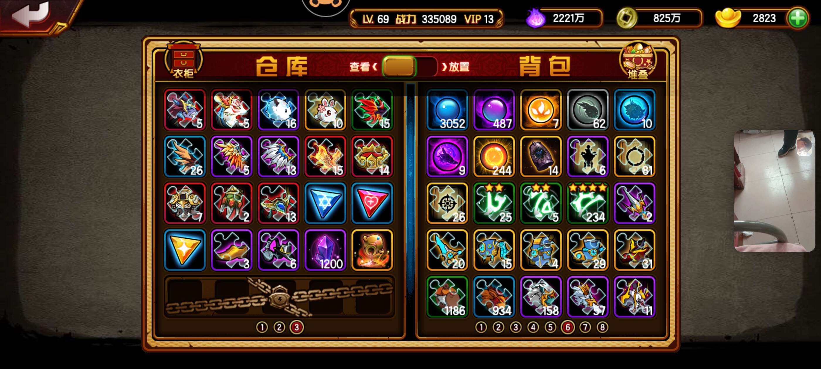 坐骑疲劳恢复四个。还有白虎坐骑。还有两百多法海碎片。宠物装备很齐全。还有一个命格出货。两件学升。五丹