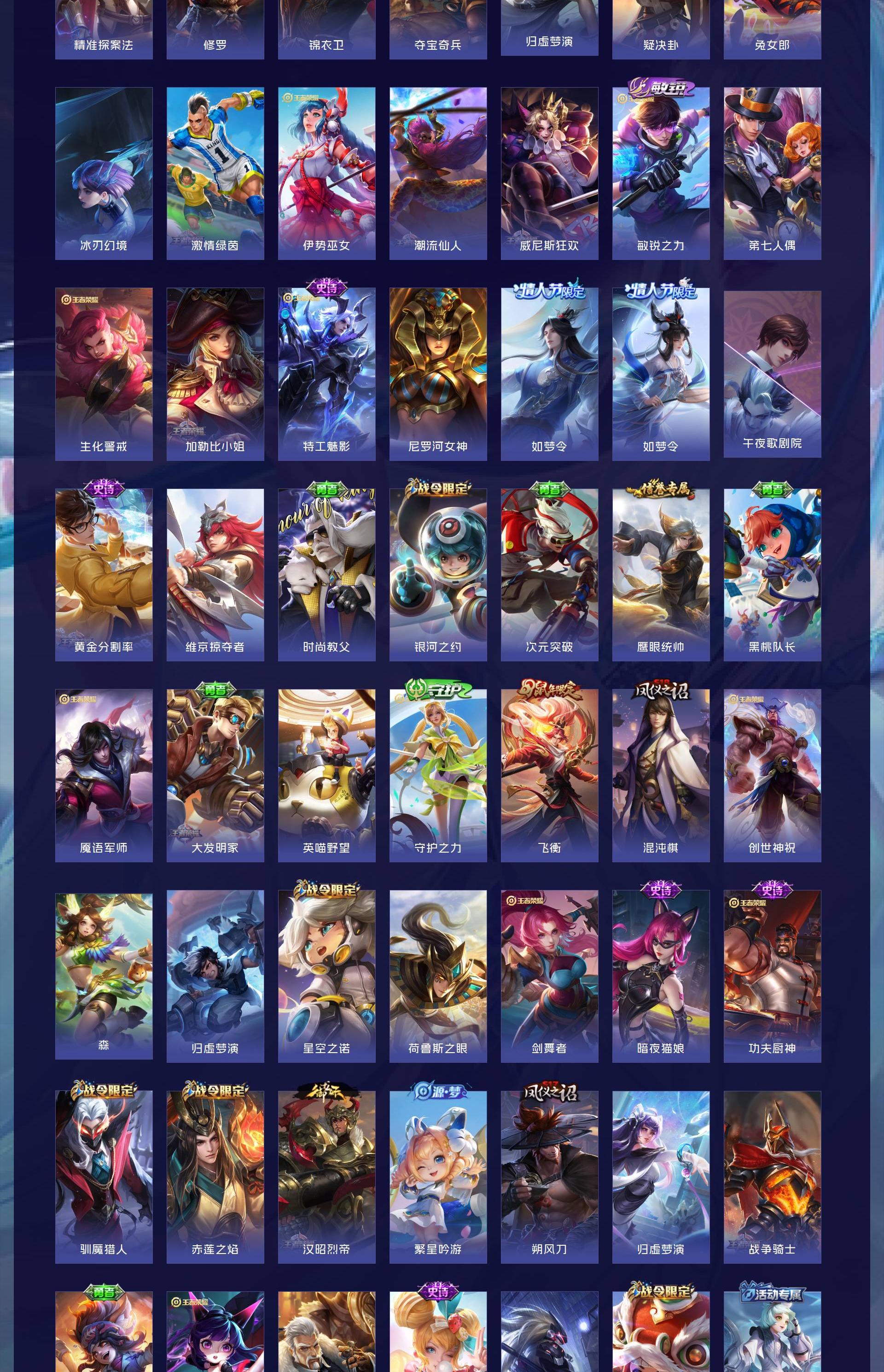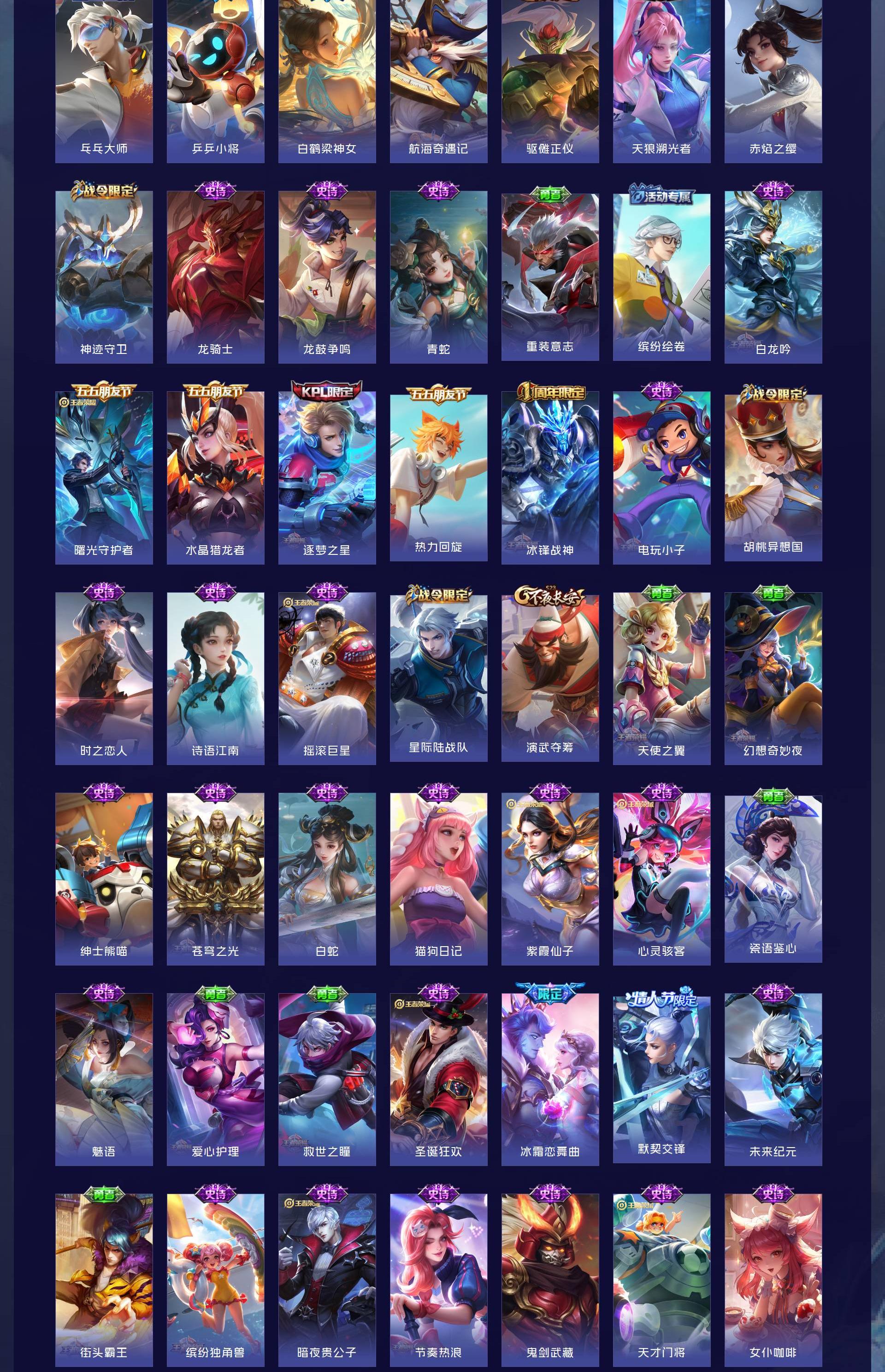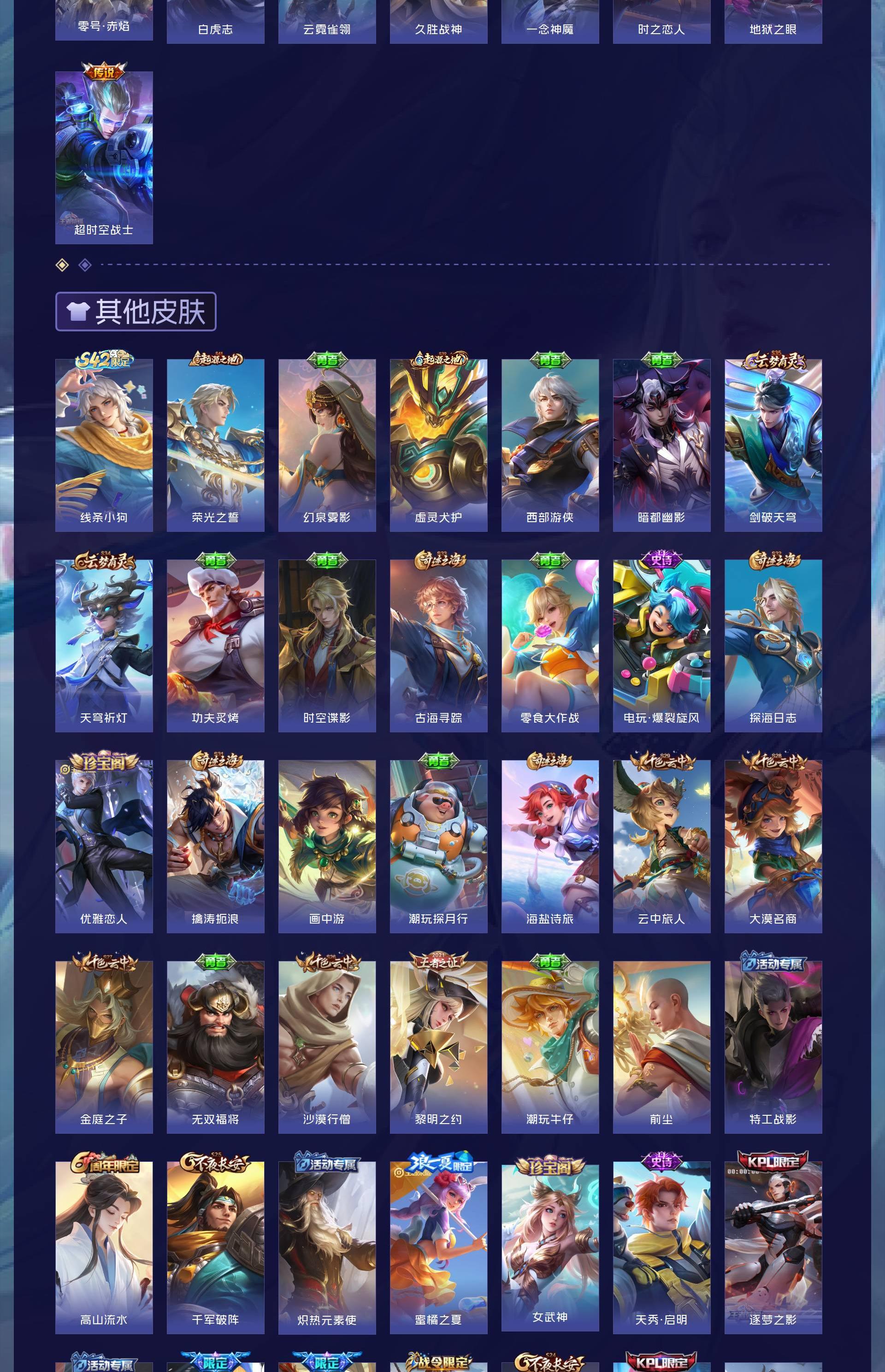 V10 皮肤343 英雄128 至尊星耀 荣耀典藏5 传说30 其他皮肤314