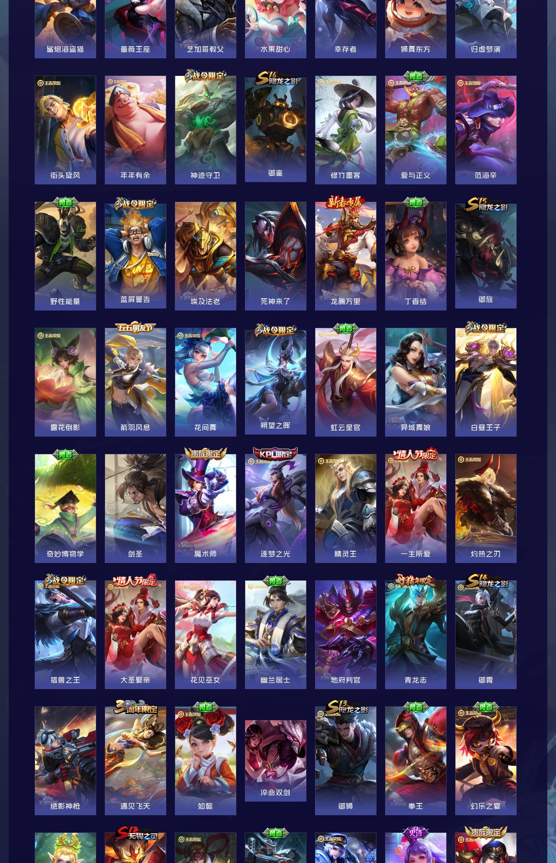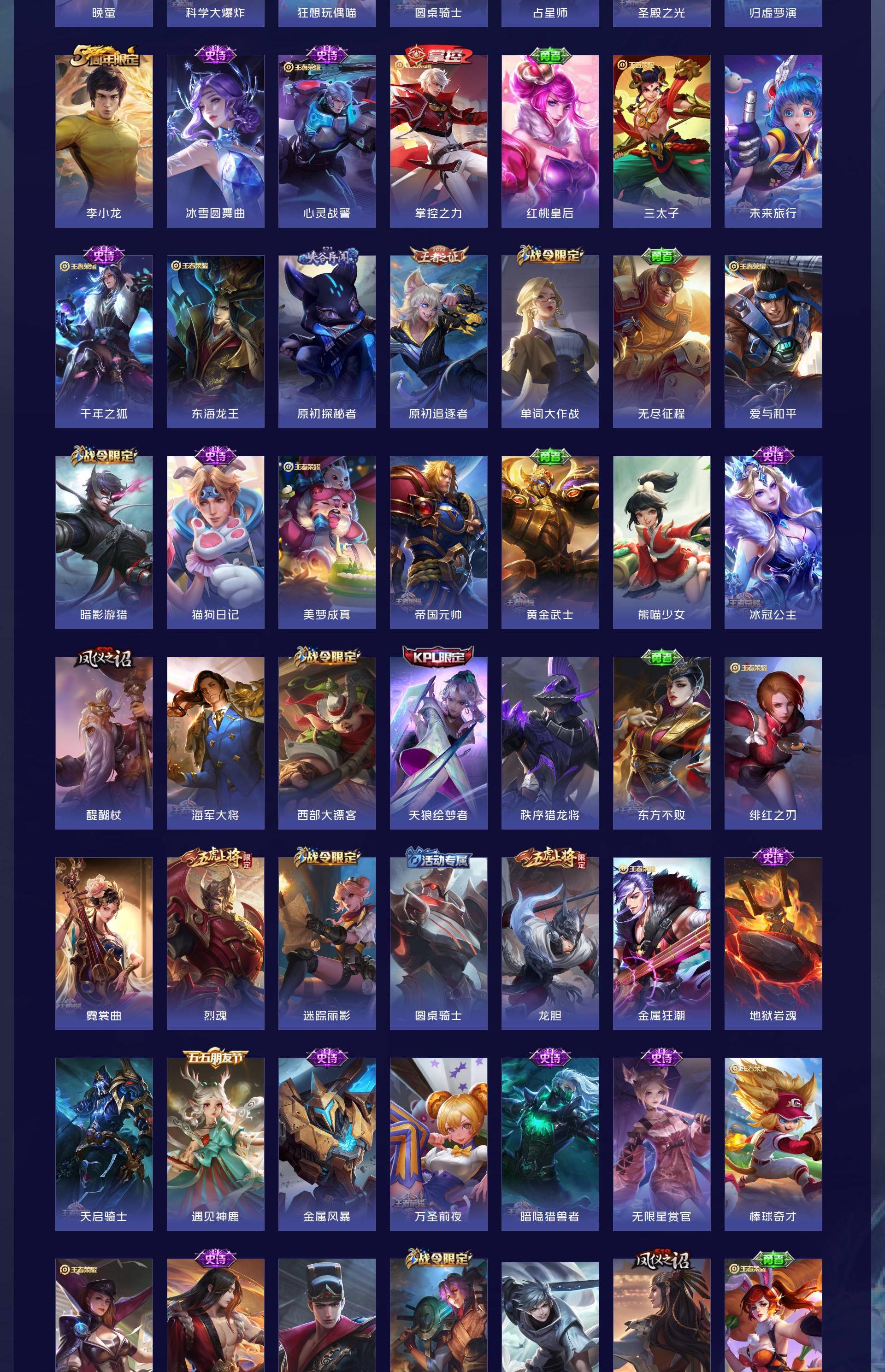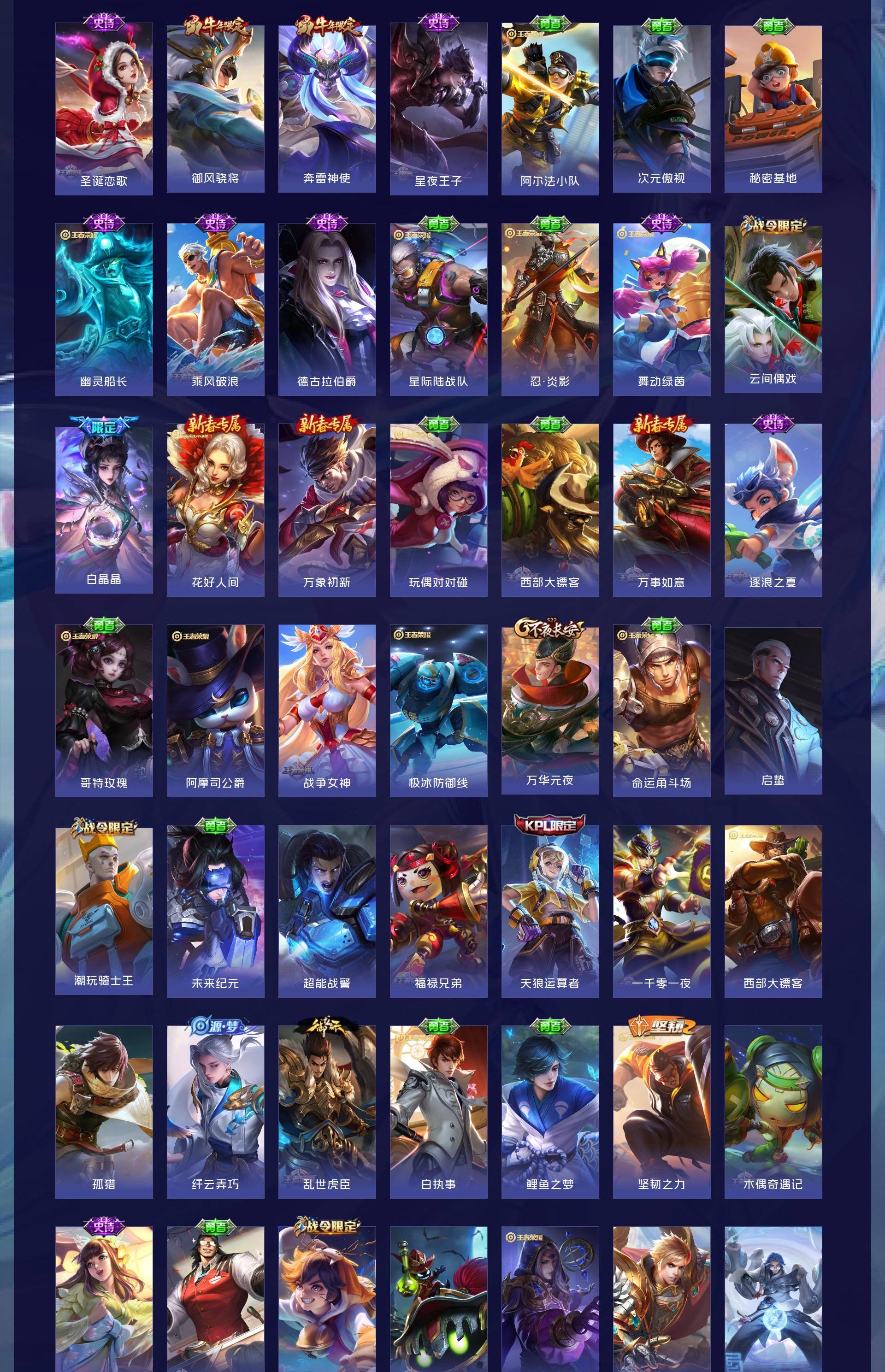 V10 皮肤343 英雄128 至尊星耀 荣耀典藏5 传说30 其他皮肤314