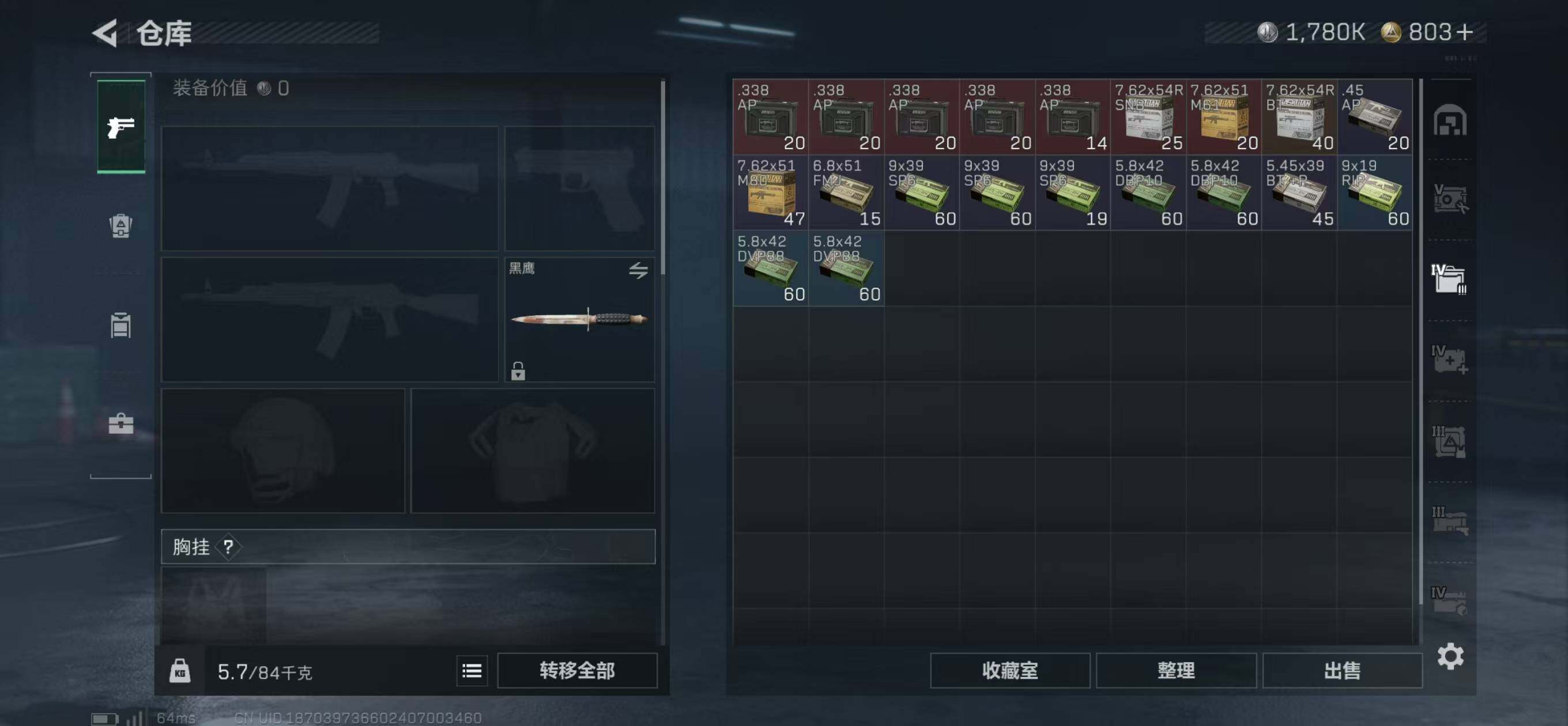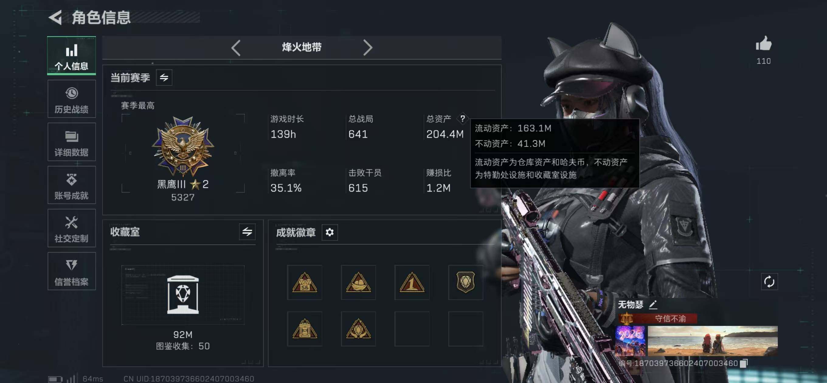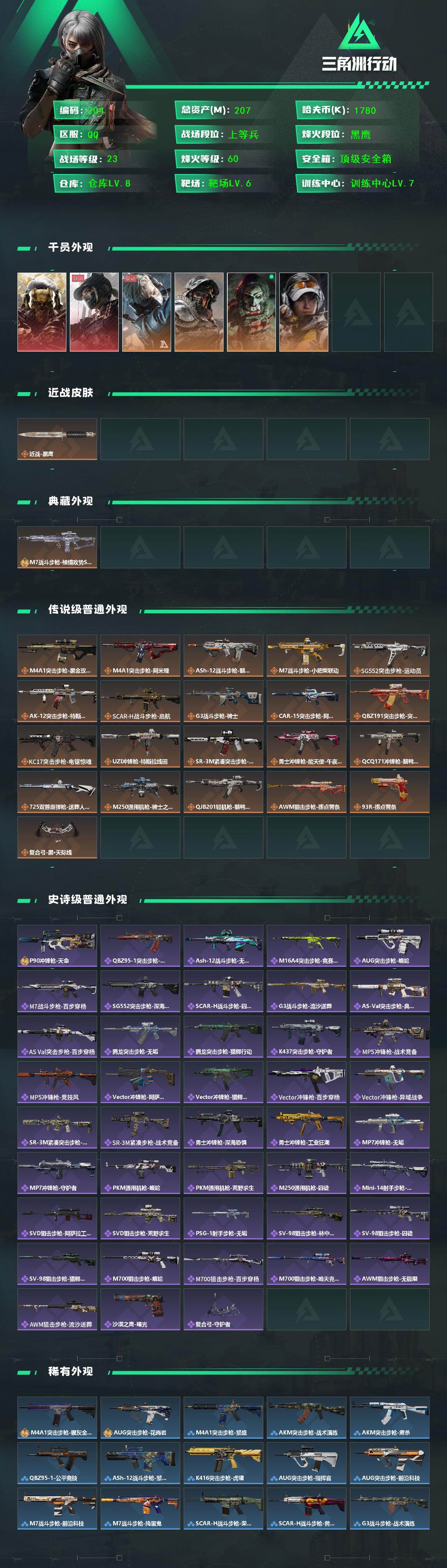 207m总资产-1780k哈伏币-60烽火等级-黑鹰-23战场等级-上等兵