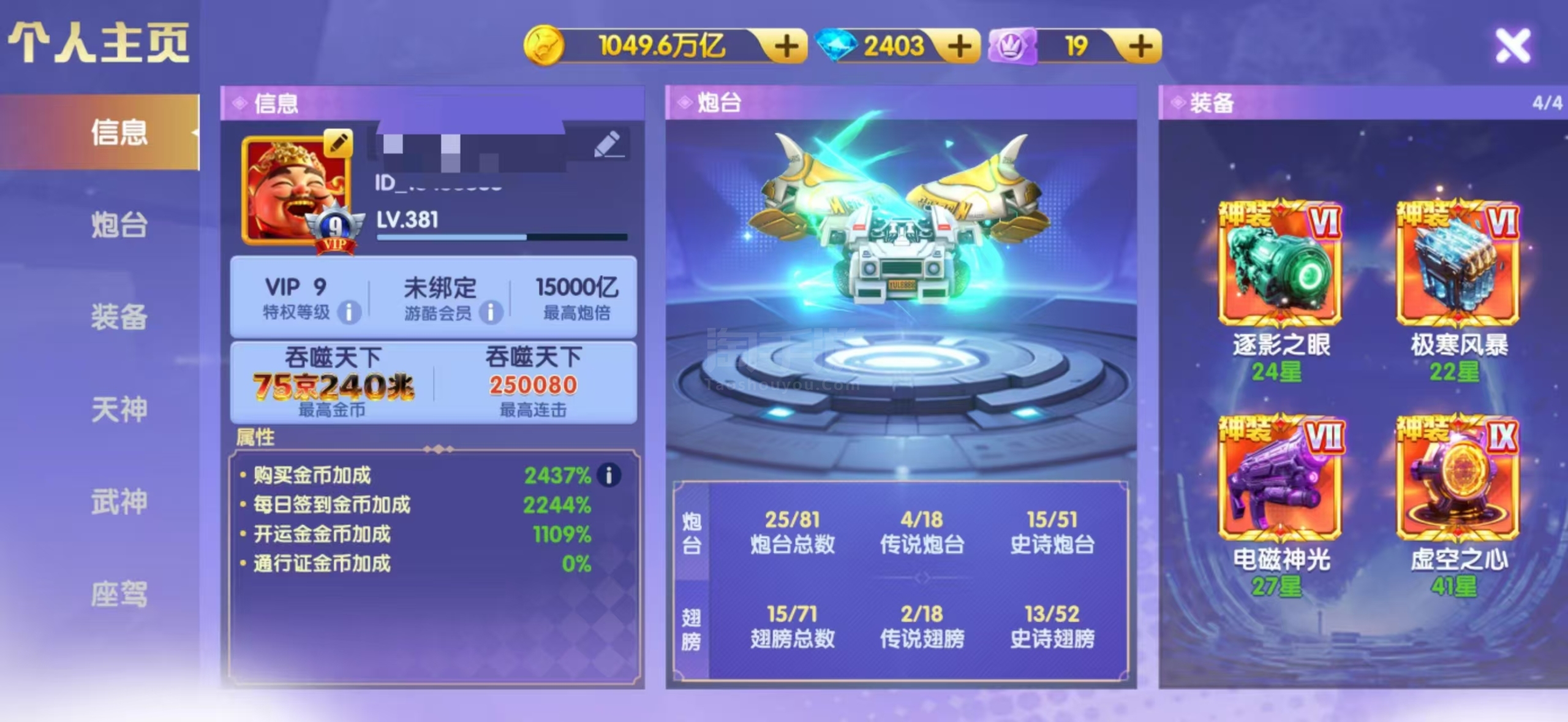 官方新Q V9 2439加成 2700连斩 天神武神上班