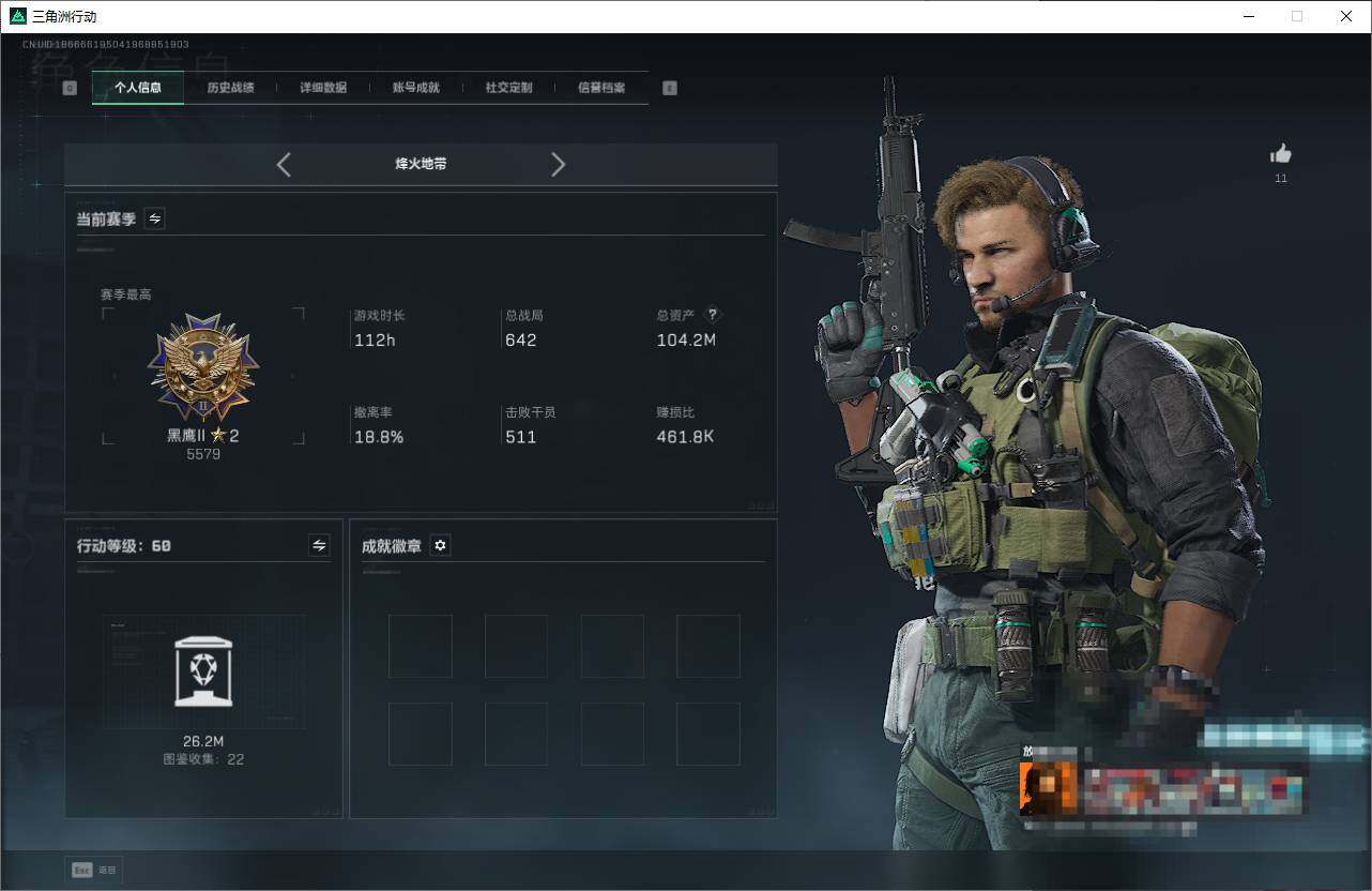【SJZF5322】总资产(M):104M/哈夫币(K):944K/哈夫币(K):944K/传说枪皮数:6/全面战场等级:17_段位:列兵/烽火地带等级:60_段位:黑鹰/骇爪-维什戴尔/红狼-电锯惊魂/露娜-金牌射手/近战-黑鹰/SG552突击步枪-运动员/SCAR-H战斗步枪-启航/G3战斗步枪-骑士/CAR-15突击步枪-阿米娅/KC17突击步枪-电锯惊魂/R93狙击步枪-维什戴尔/AUG突击步枪-蝮蛇/M7战斗步枪-百步穿杨/G3战斗步枪-流沙送葬/AS Val突击步枪-百步穿杨/MP5