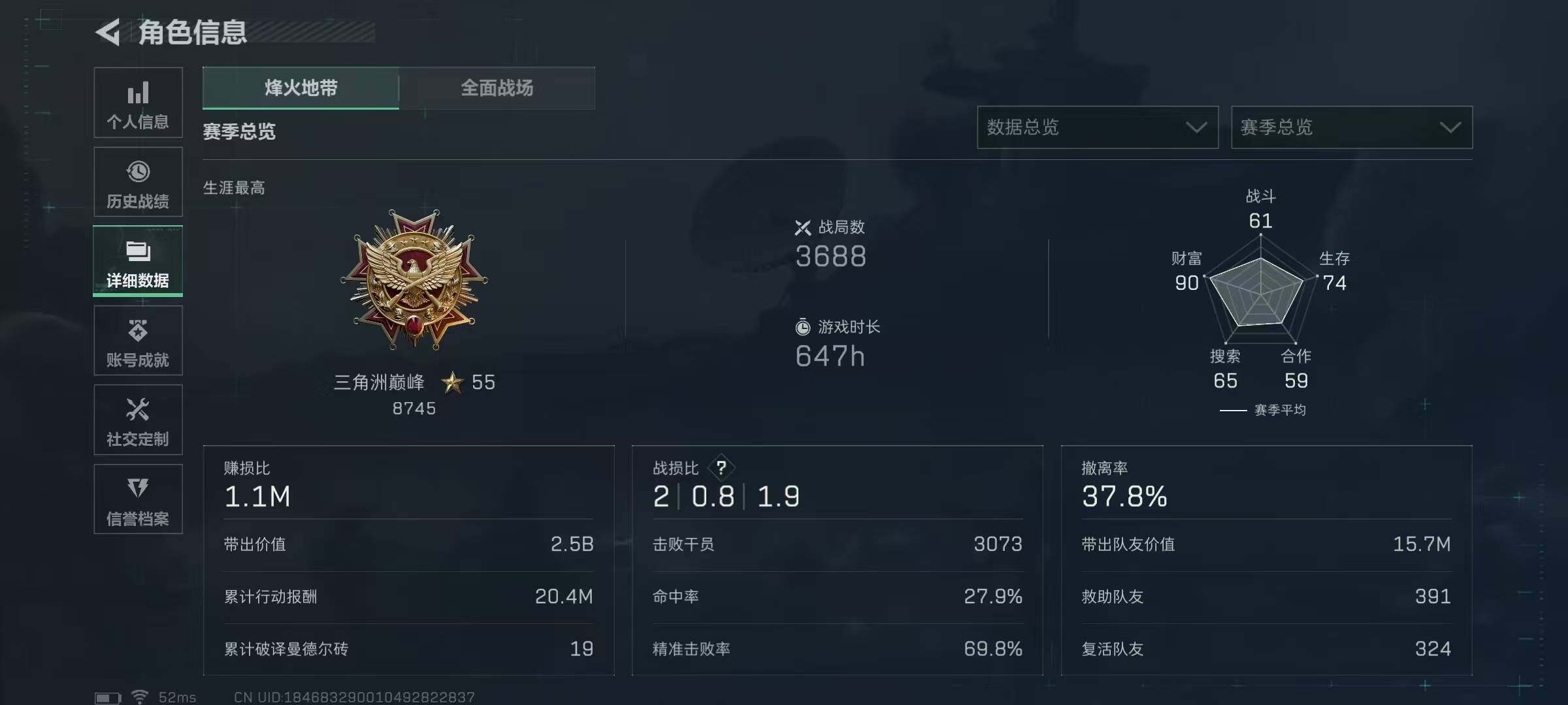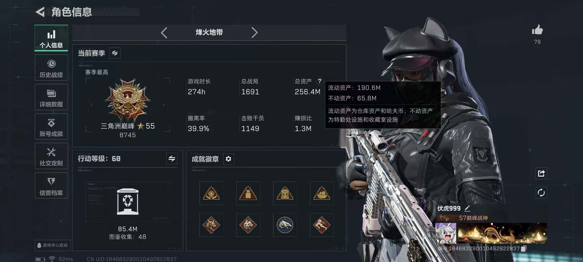 【SJ989】【满体有二次 三刀皮带双典藏枪皮】60级/总资256M/流资190M/M7战斗步枪-棱镜攻势S2(优品S)AS Val突击步枪-悬赏令(优品C带渐变)刀皮(影锋+北极星+信条)红狼(蚀金玫瑰+电锯惊魂)蜂医(送葬人无题密令)深蓝(不破誓约)露娜(黑天际线+金牌射手)/8级仓库7级体力6级负重/16发AW子弹+84发其他红弹