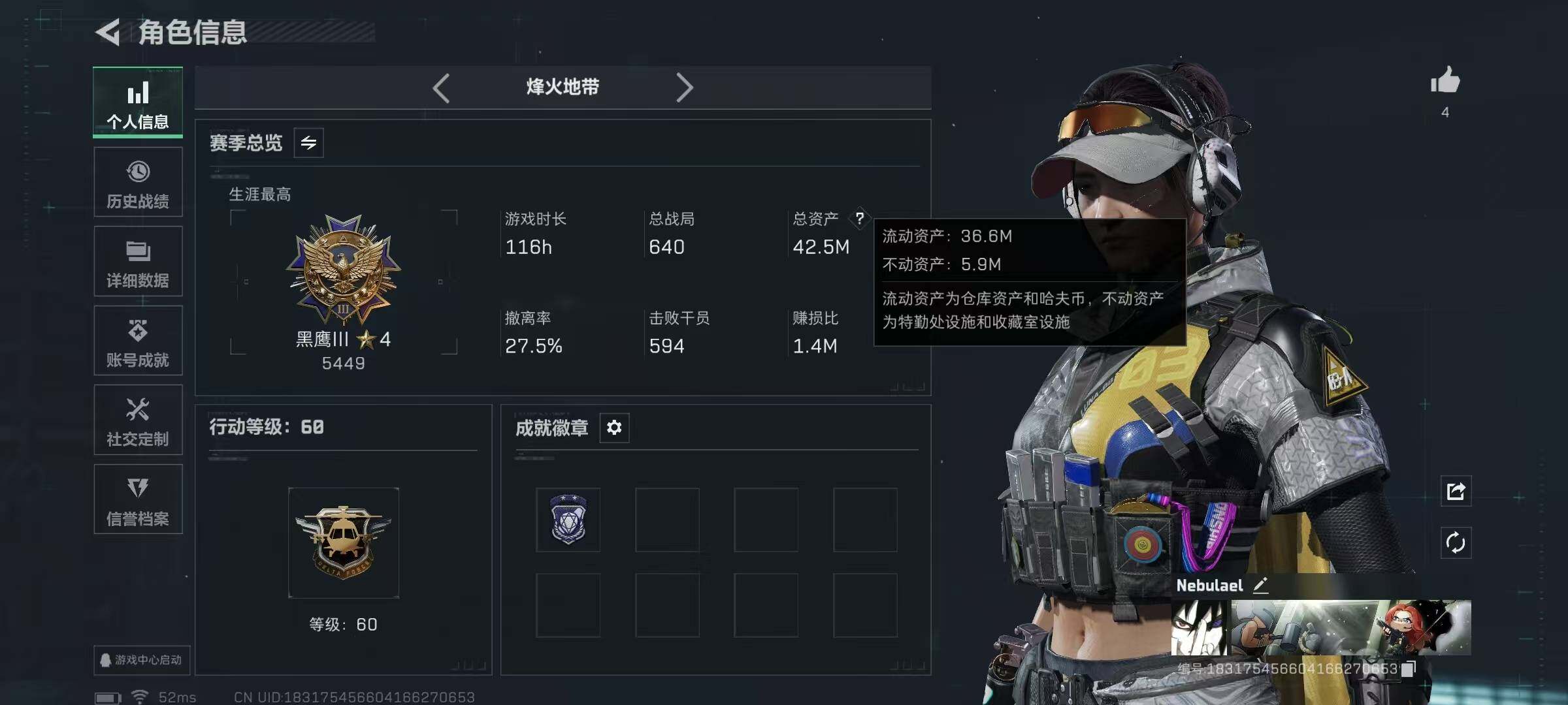 【SJ986】【怜悯小资号带高级3X2】60级/总资42M/流资36M/100点卷/刀皮(怜悯)露娜(金牌射手)/5级仓库3级体力3级负重+非洲之心/18发AW子弹