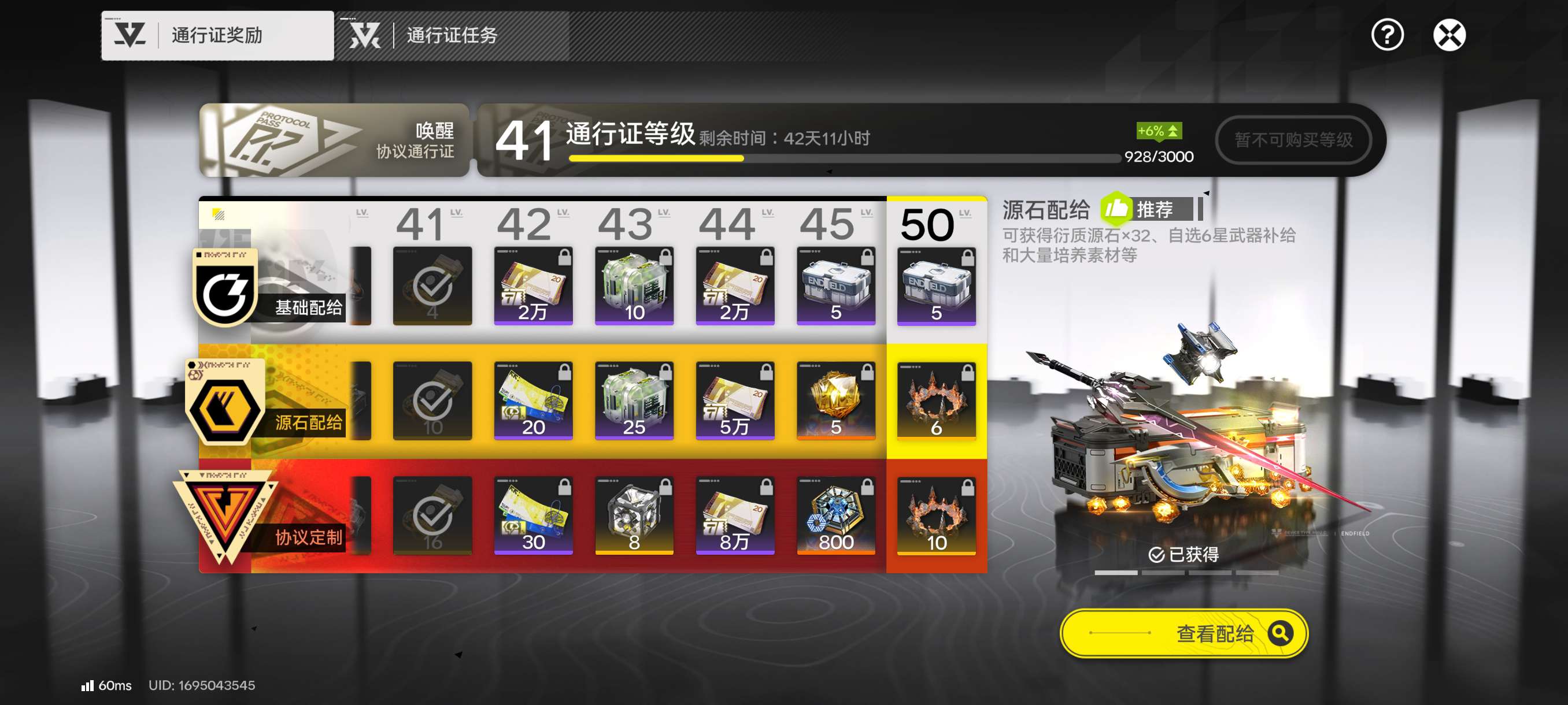 毕业1命莱万汀+4破专武+2命别礼,有大小月卡,基建全弄好,电梯也搭好了