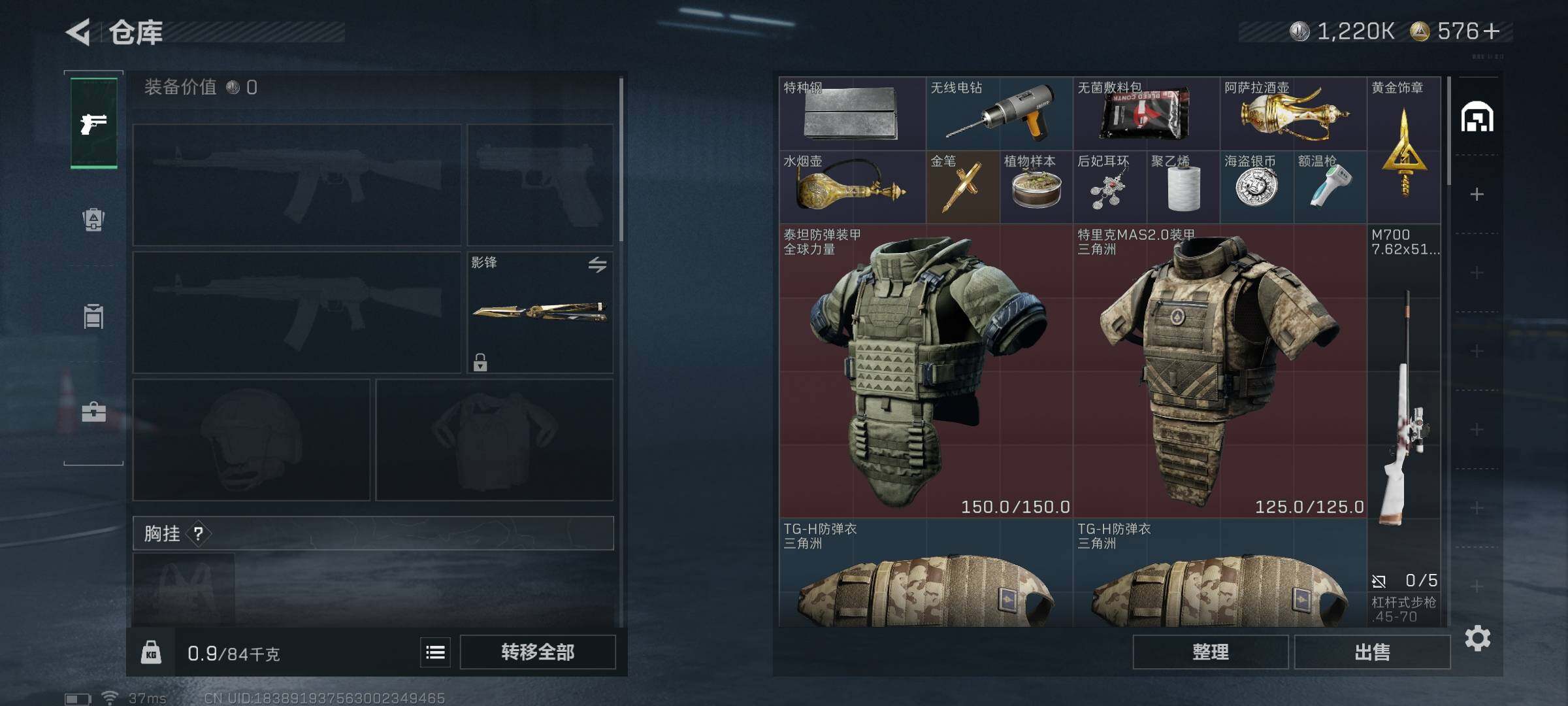 总资产(M):32M/哈夫币(K):1220K/哈夫币(K):1220K/传说枪皮数:21/全面战场