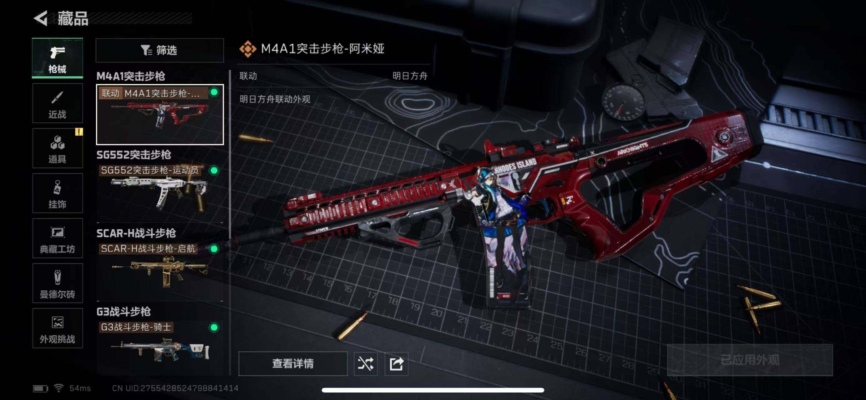【传说外观】:M4A1突击步枪-阿米娅,SG552突击步枪-运动员,SCAR-H战斗步枪-启航,G3战斗步枪-骑士,CAR-15突击步枪-阿米娅,KC17突击步枪-电锯惊魂,R93狙击步枪-维什戴尔