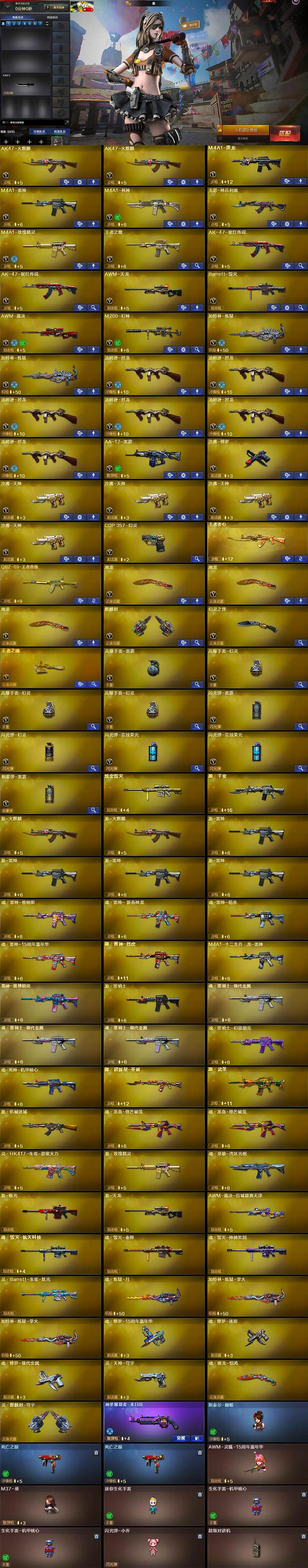 【热门武器】:M200-幻神,QBZ-03-王者蔷薇,死亡之眼*2,王者炎心,汤姆逊-烈龙*6,加特林-炼狱*2,斯泰尔-蝴蝶,COP 357-幻灵,沙鹰-修罗