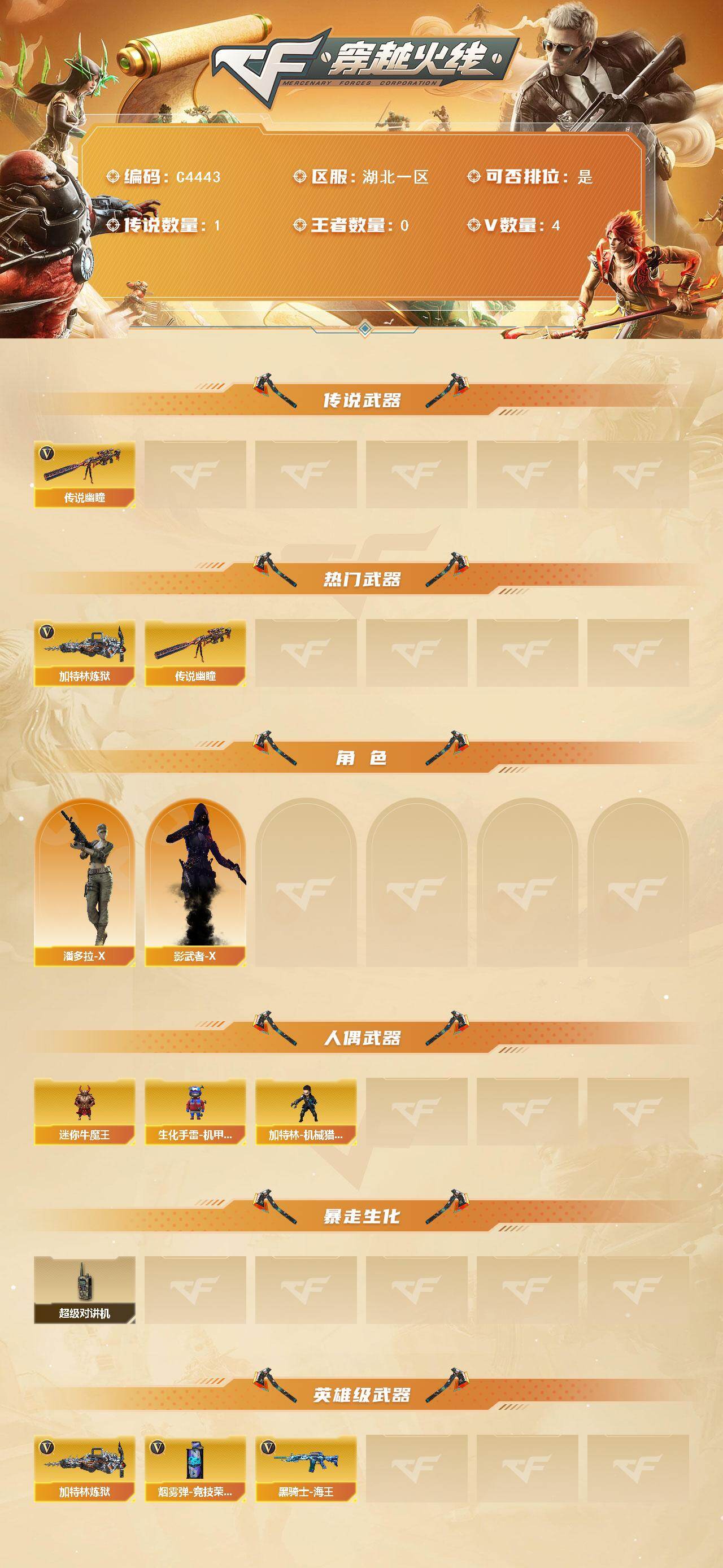 【C4443】湖北一区-4V-0王者-0炫金