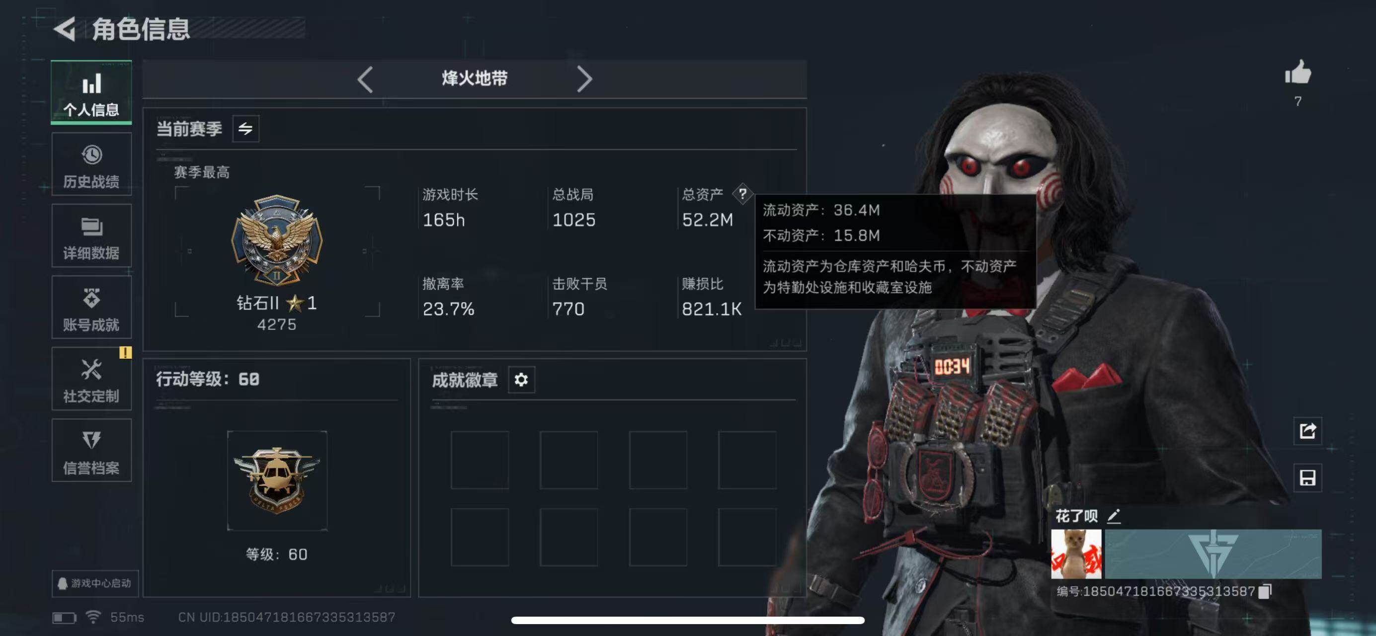 【SJ982】【无封禁】行动等级:60 总资产:52M 哈夫币:1600W 近