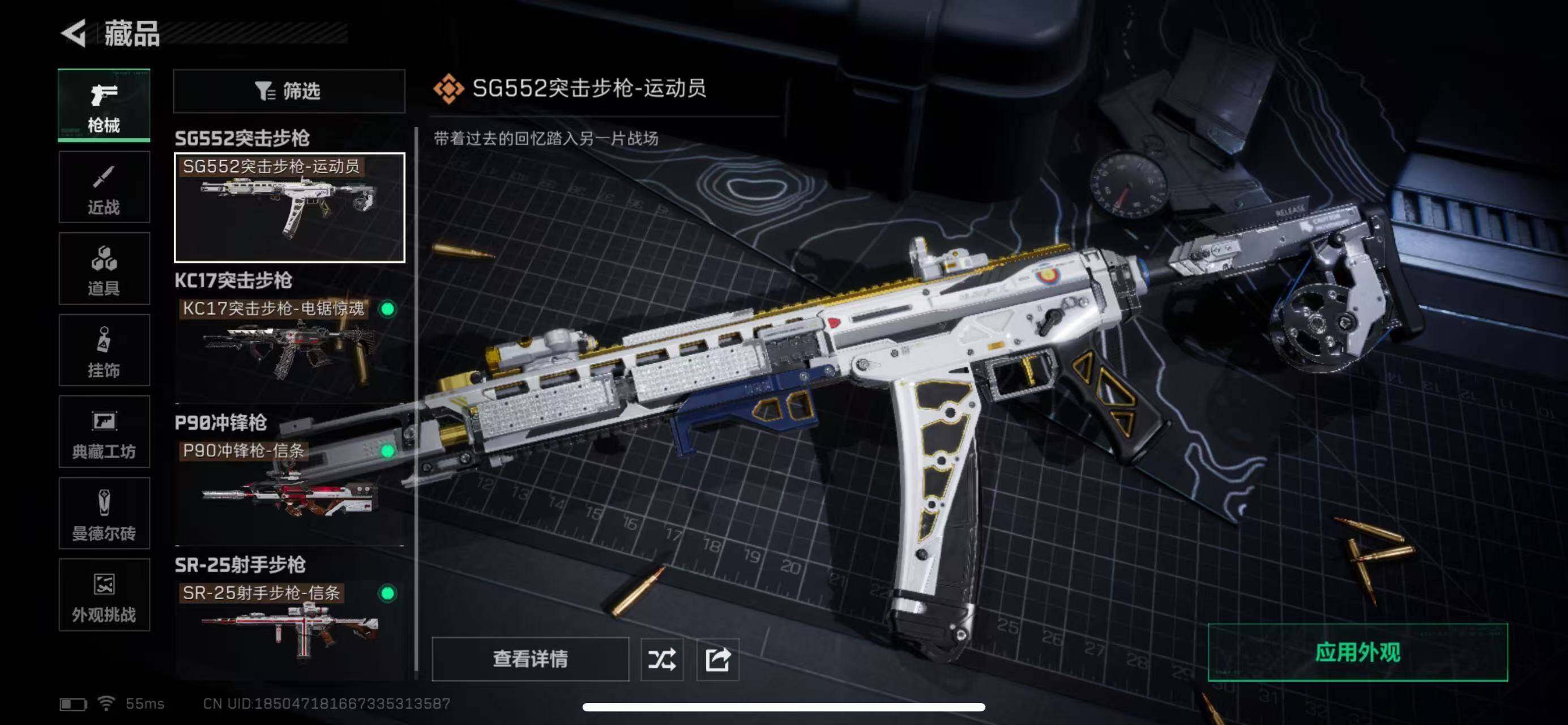 【传说外观】:SG552突击步枪-运动员,KC17突击步枪-电锯惊魂,P90冲锋枪-信条,SR-25射手步枪-信条