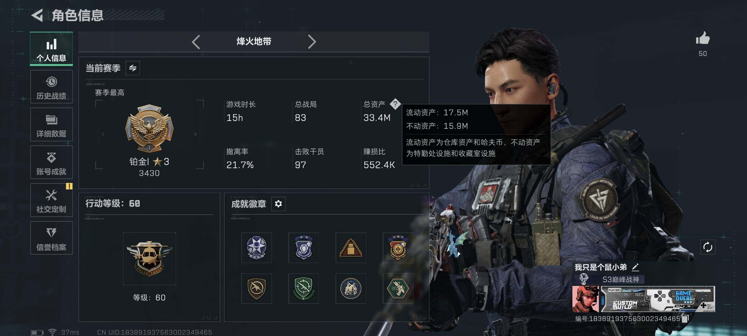 总资产(M):32M/哈夫币(K):1220K