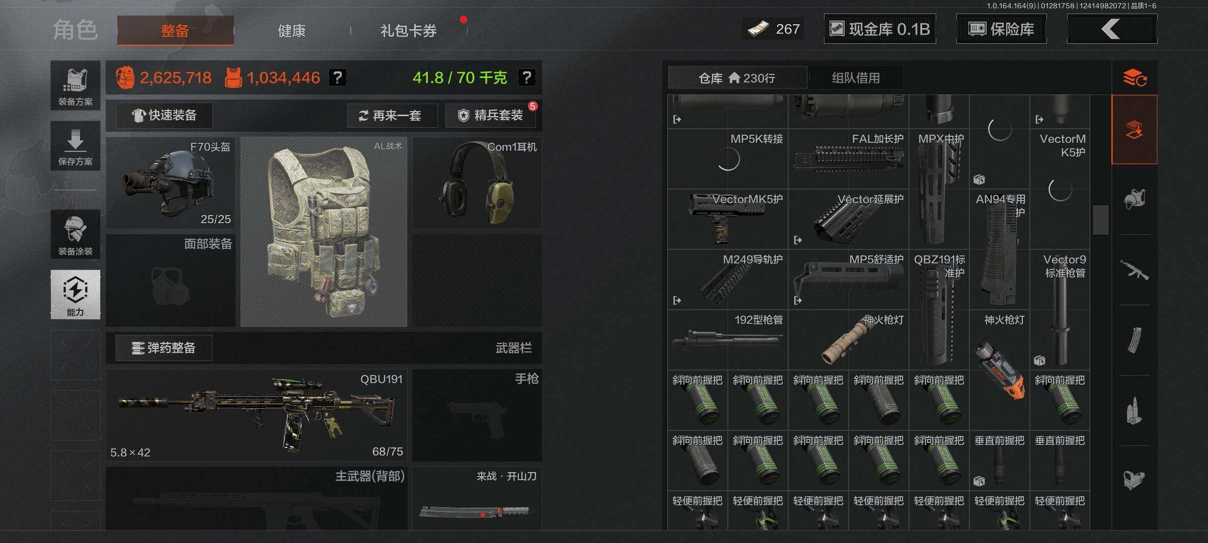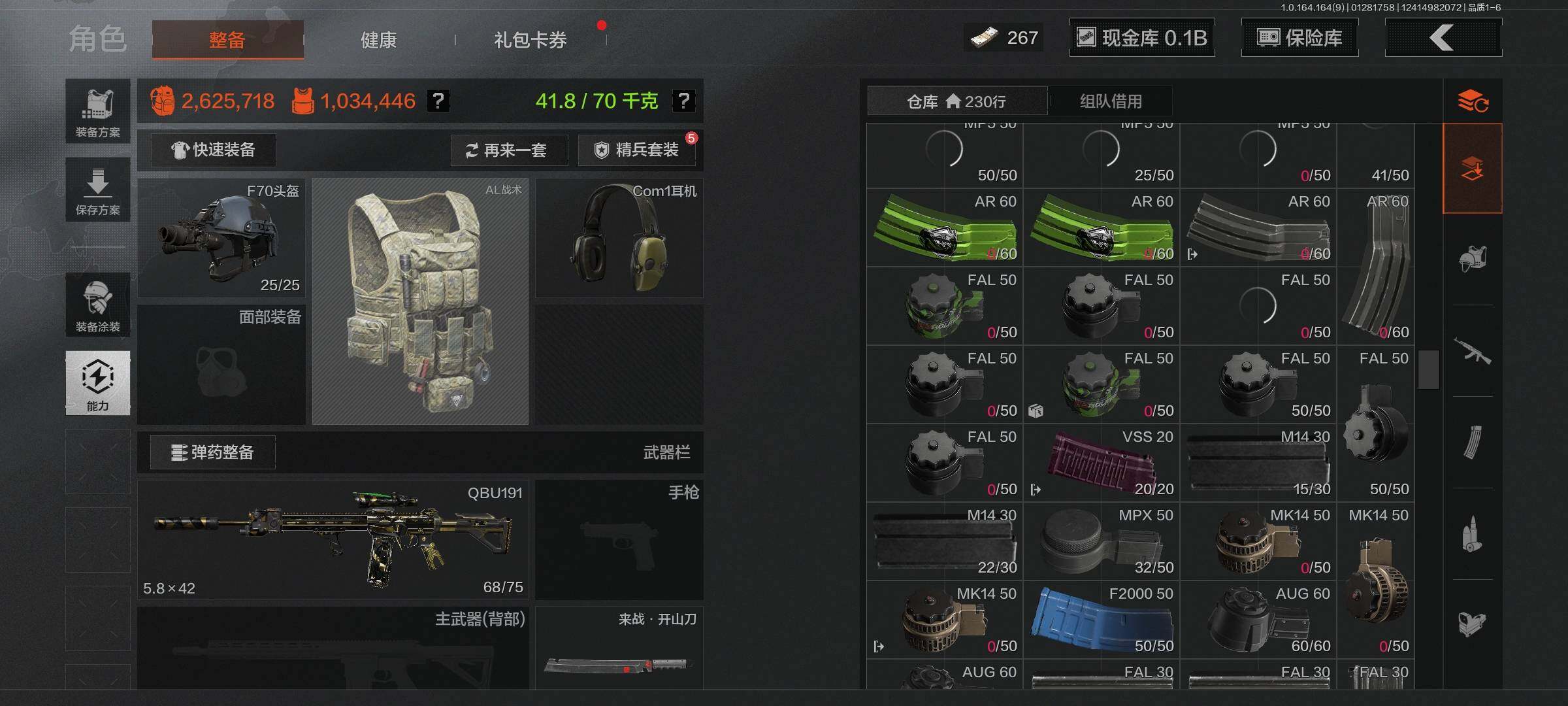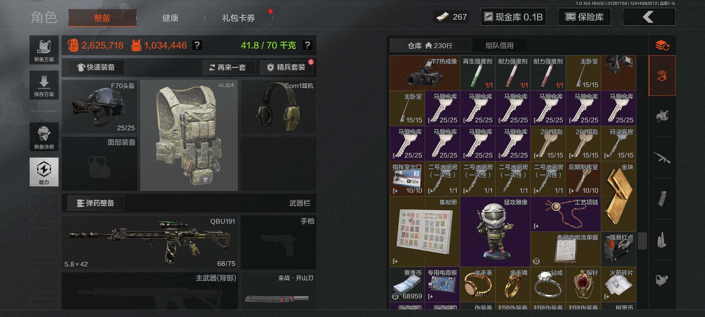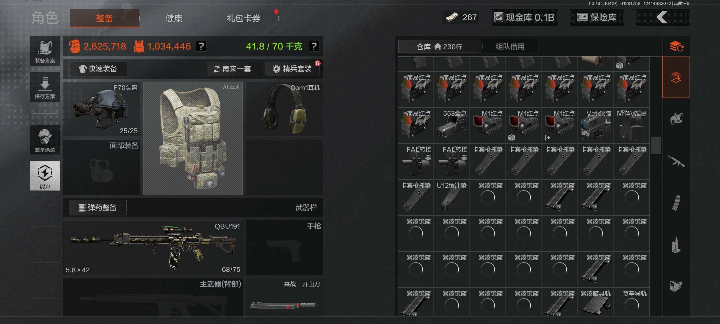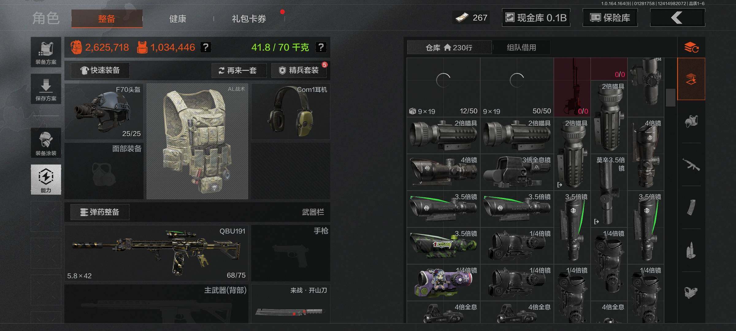 【AQZG1098】等级:30/段位:暗区传说/仓库价值(百万):197.9/柯恩币:145858805/工兵铲/来战开山刀/棱光裂变QBU191/旧王圣谕QBZ191/竞技FAL/伦琴幻影FAL
