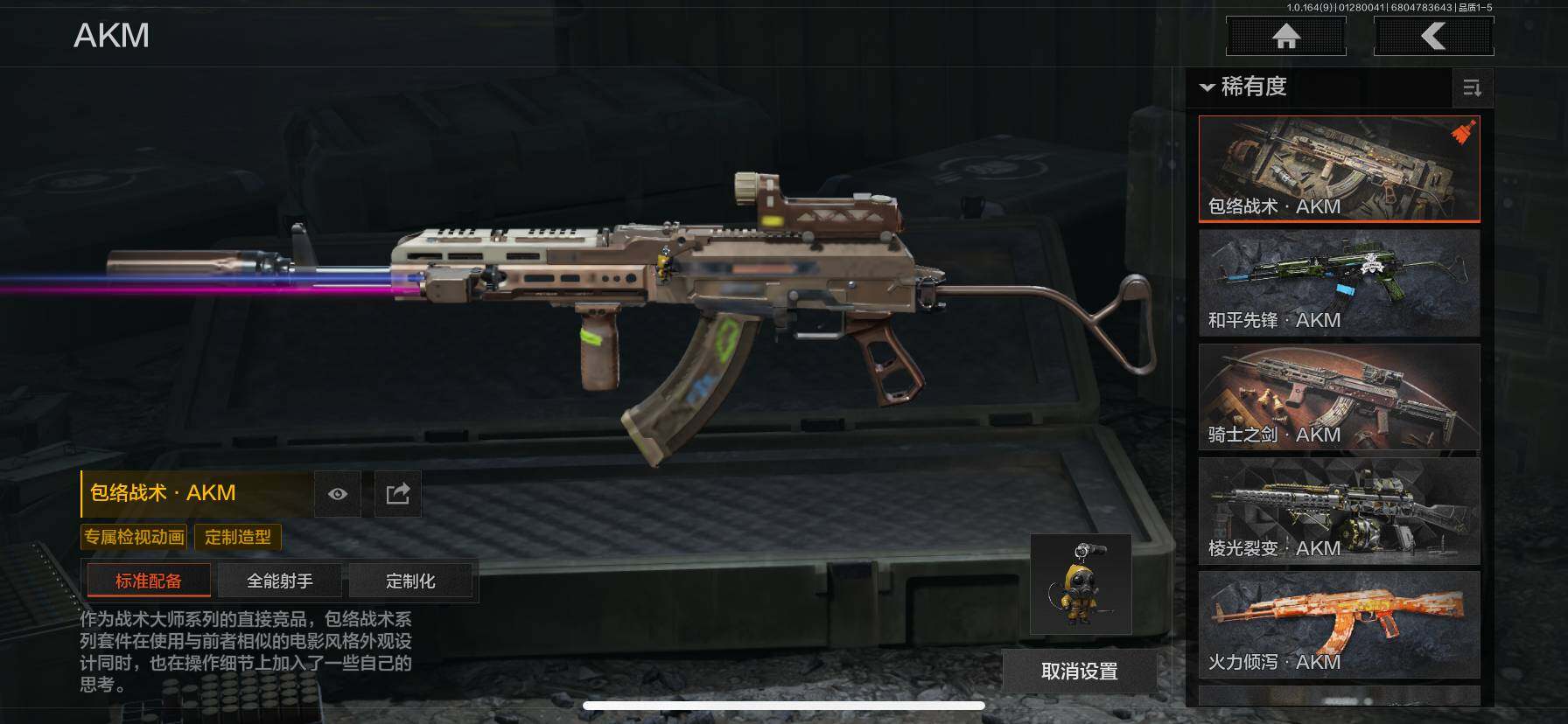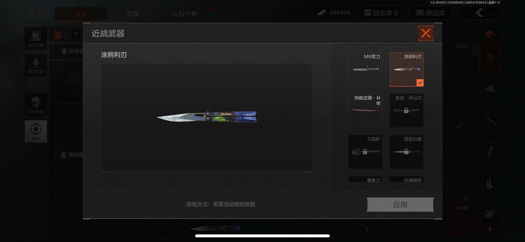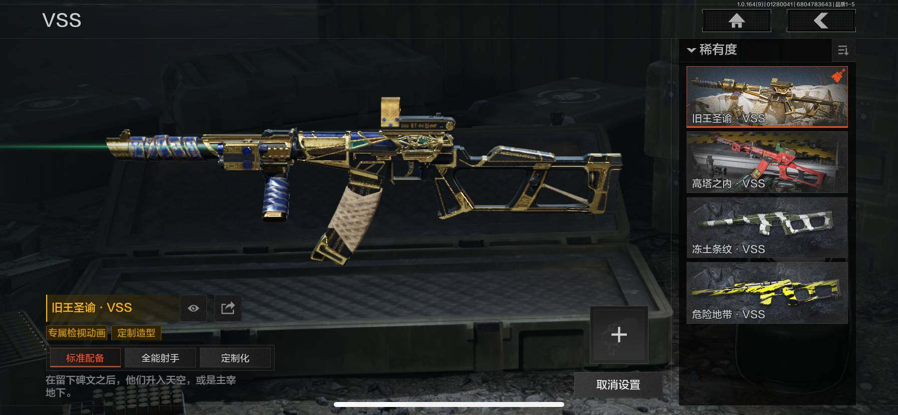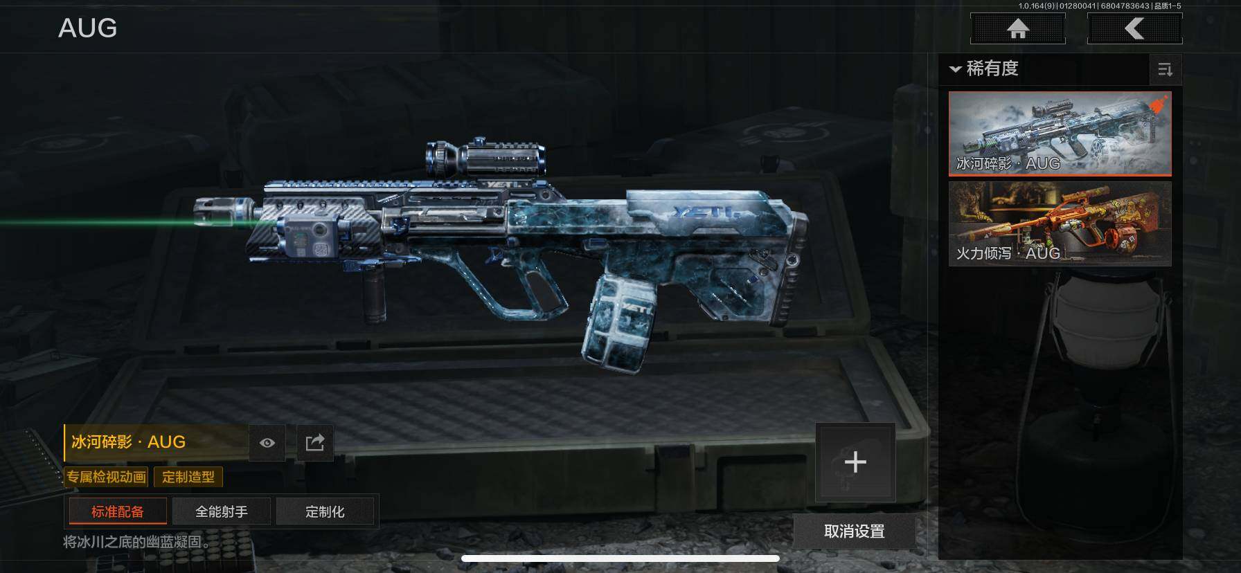 仓库价值(百万):11/热能武器补牢/涂鸦利刃/白蔷薇斯黛拉/冰河碎影AUG/旗帜AEK/旧王圣谕QBZ191/旧王圣谕VSS/芭斯特