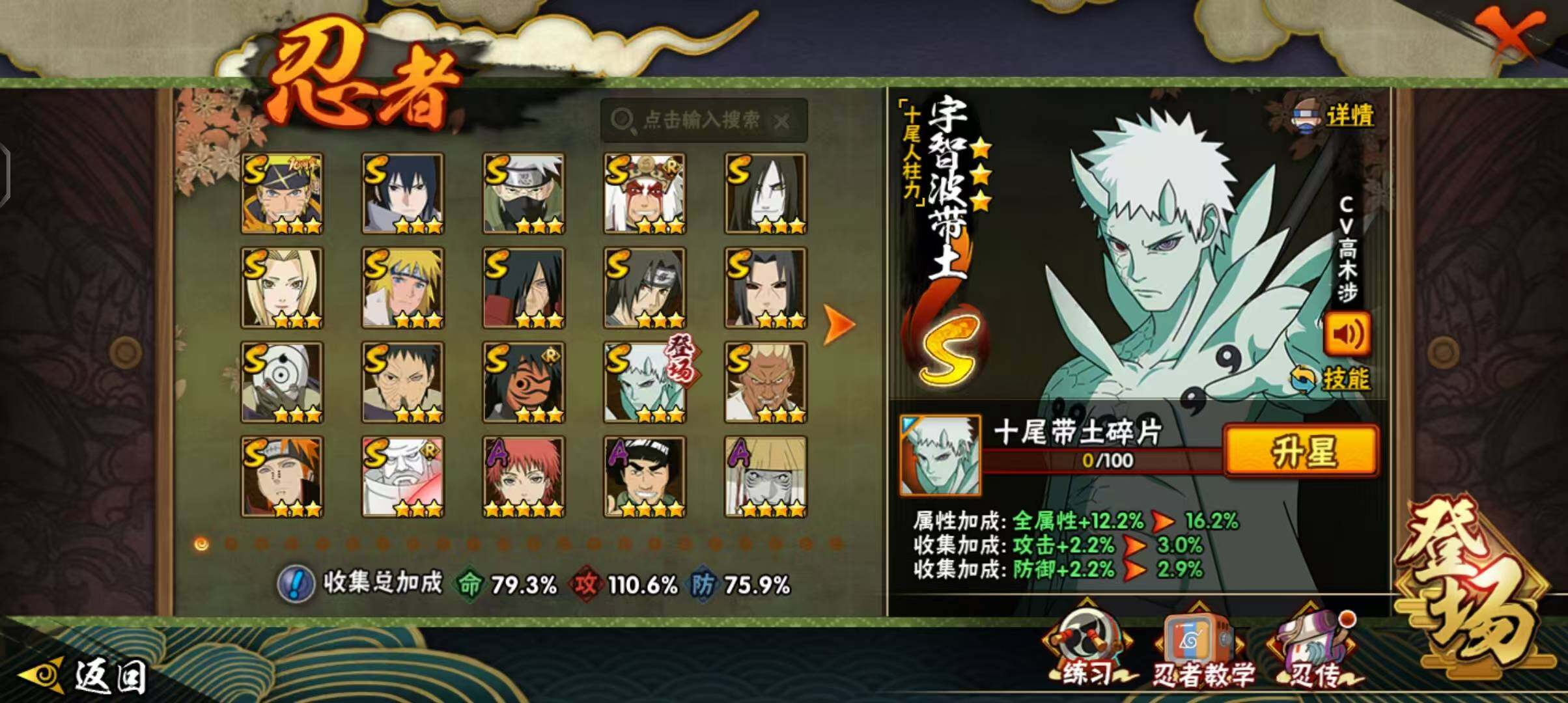 V8/战力103W/S忍17/A忍29/通灵兽18/秽土转生-宇智波斑