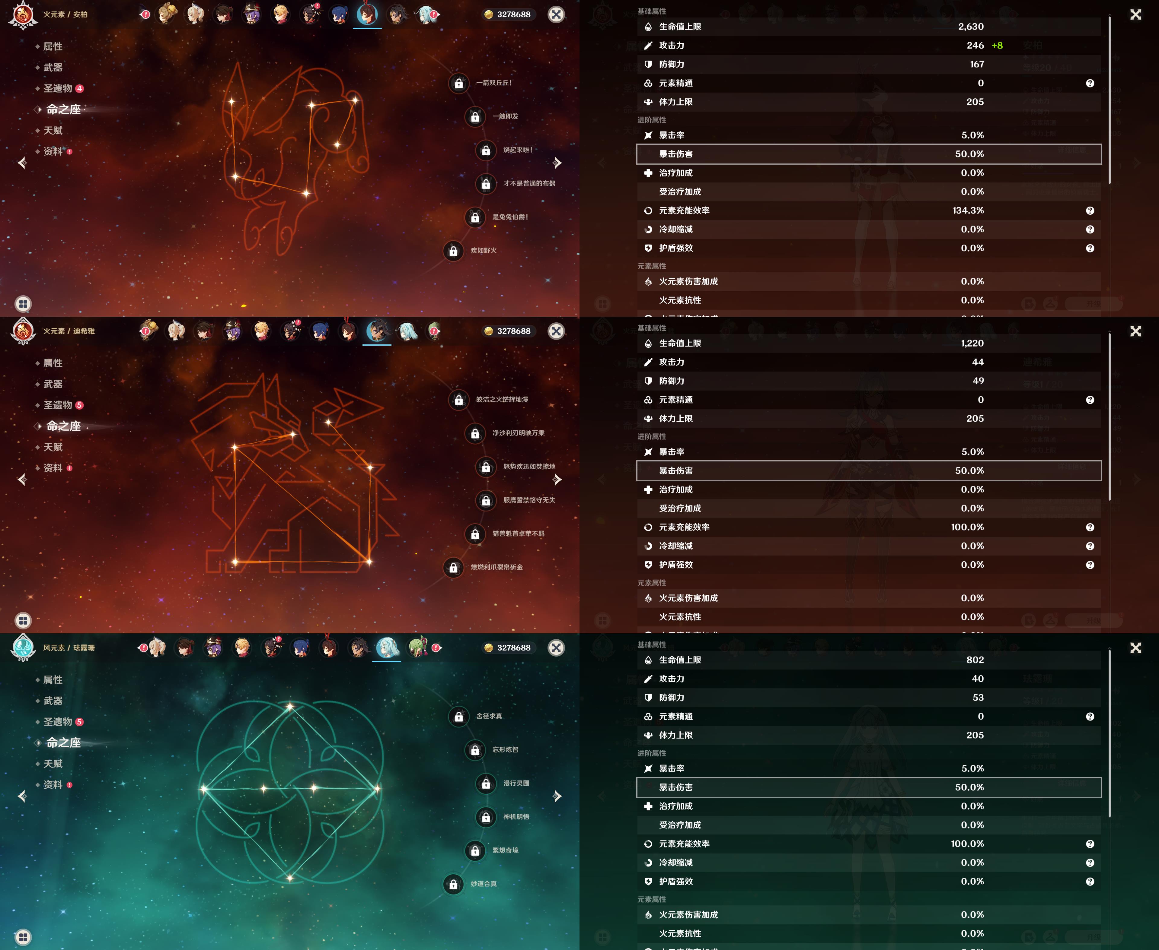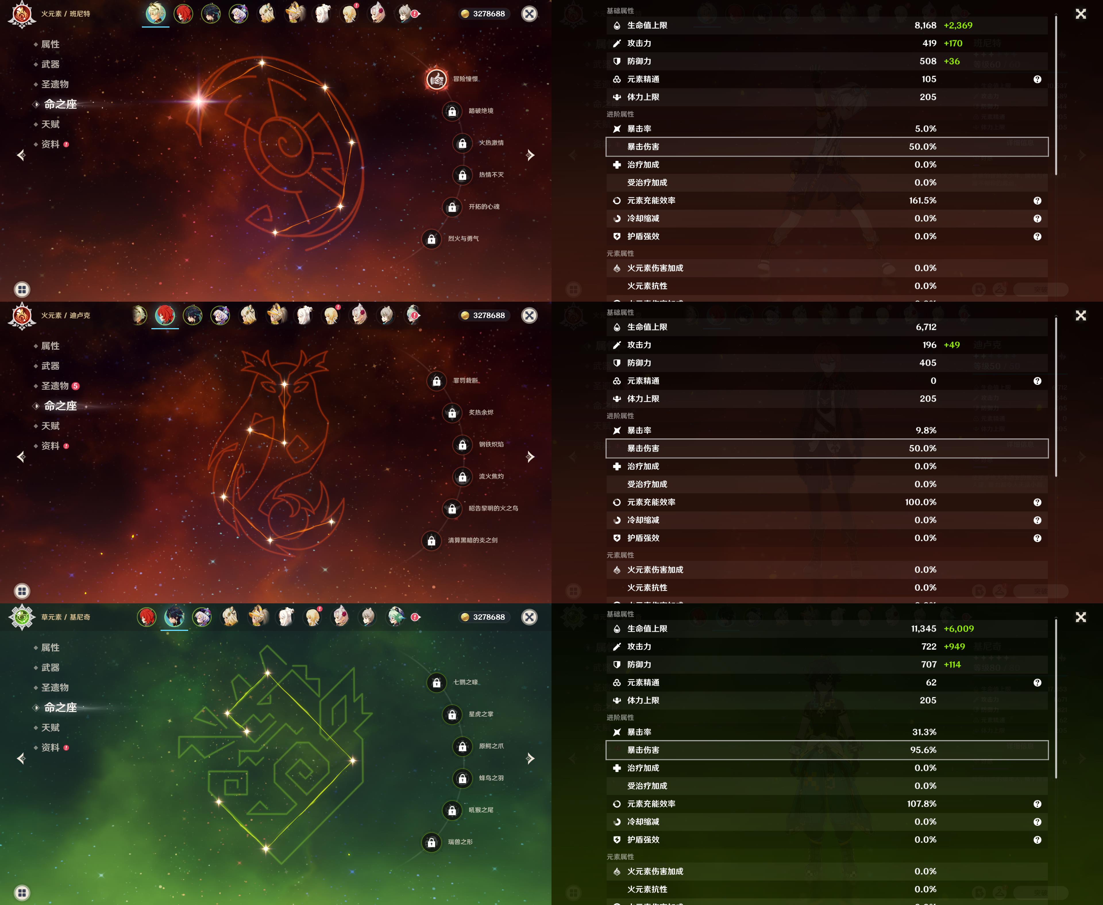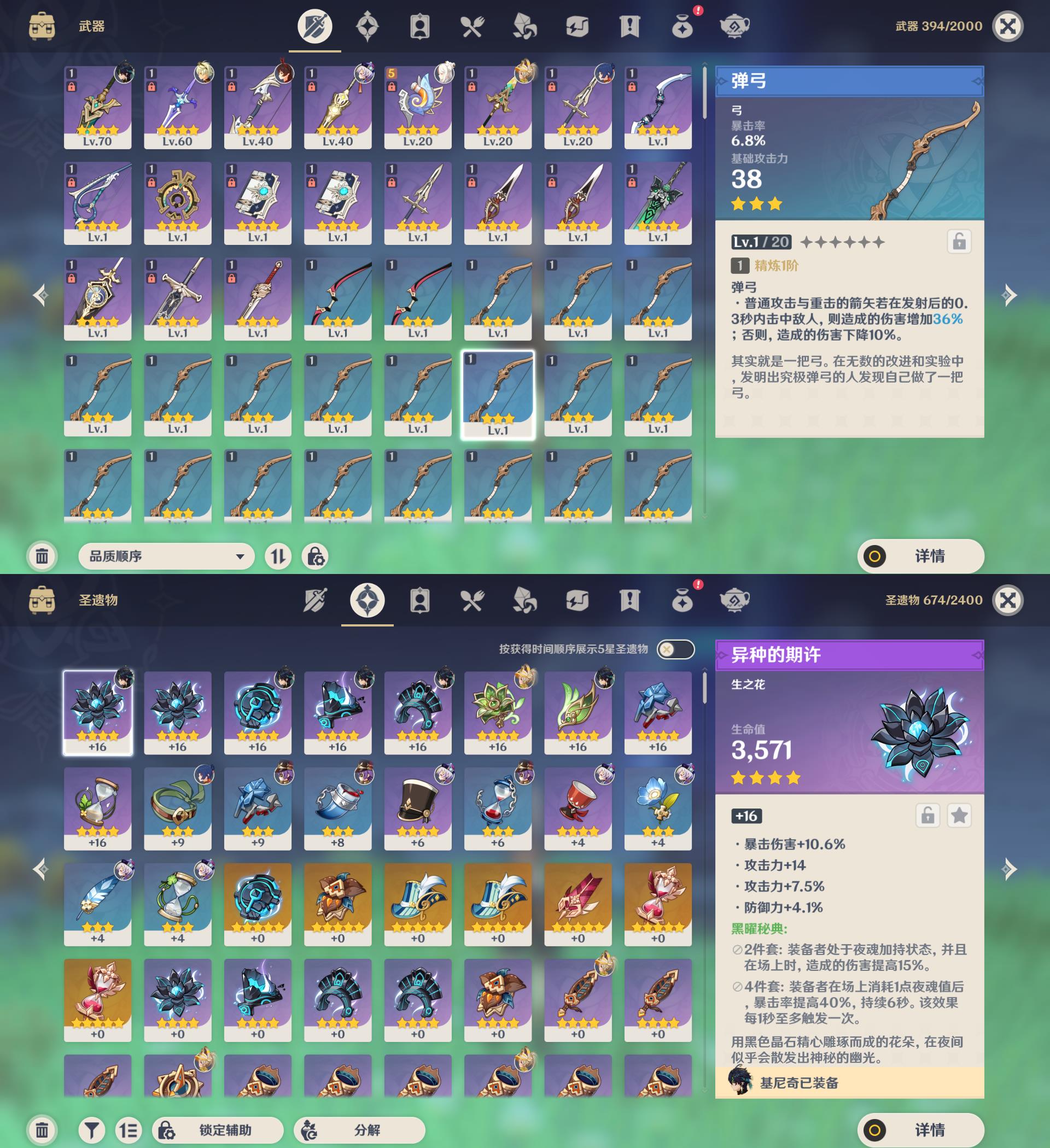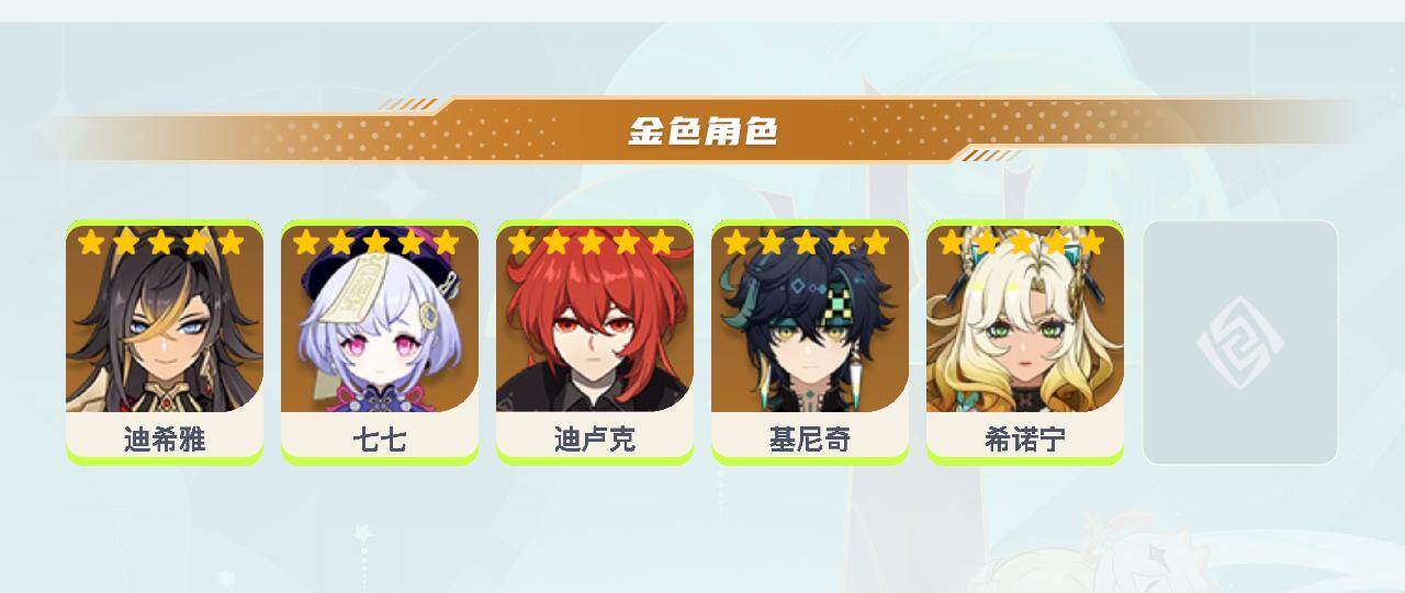 42级/5黄/女主/5个五星角色/迪卢克/基尼奇/七七