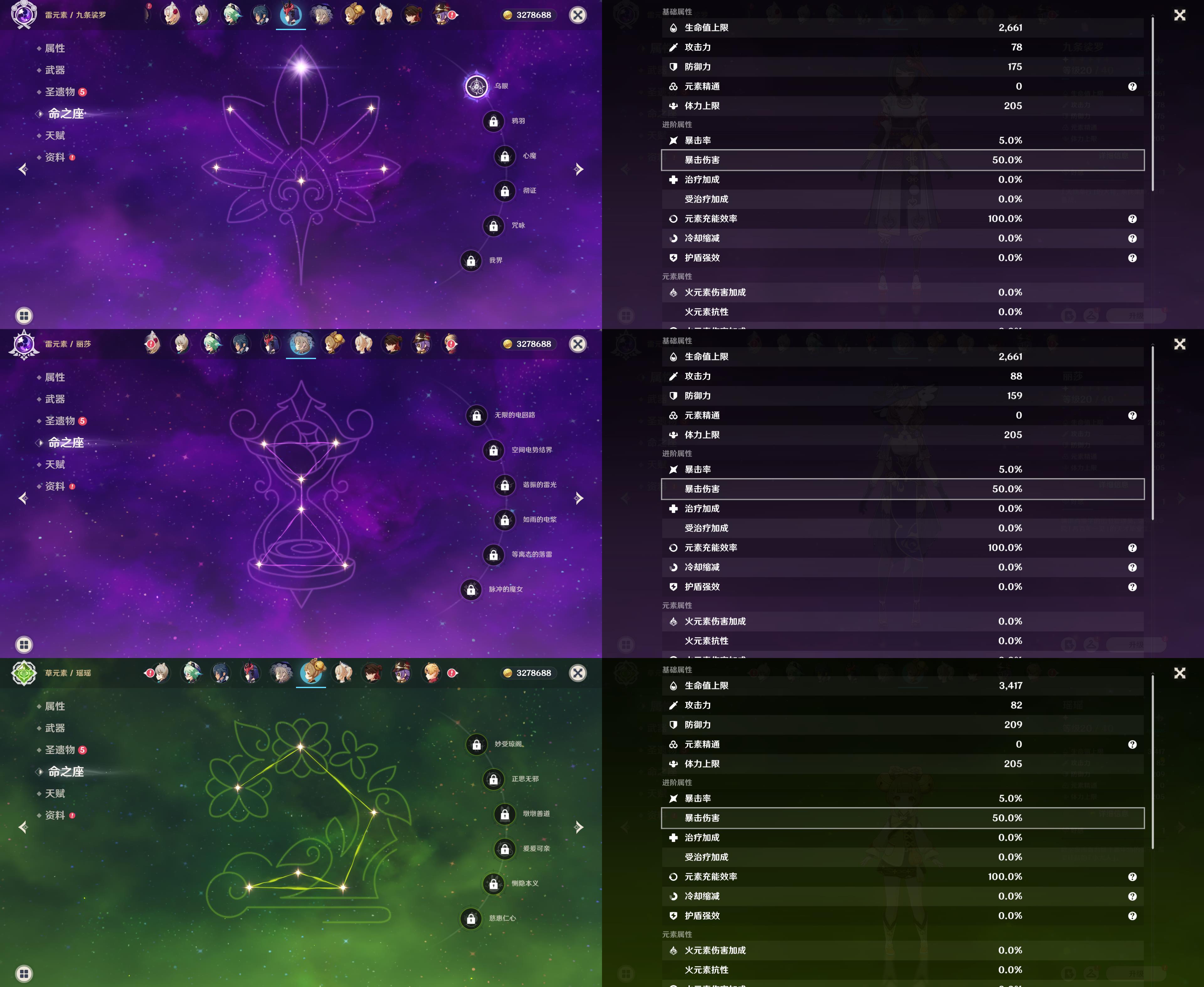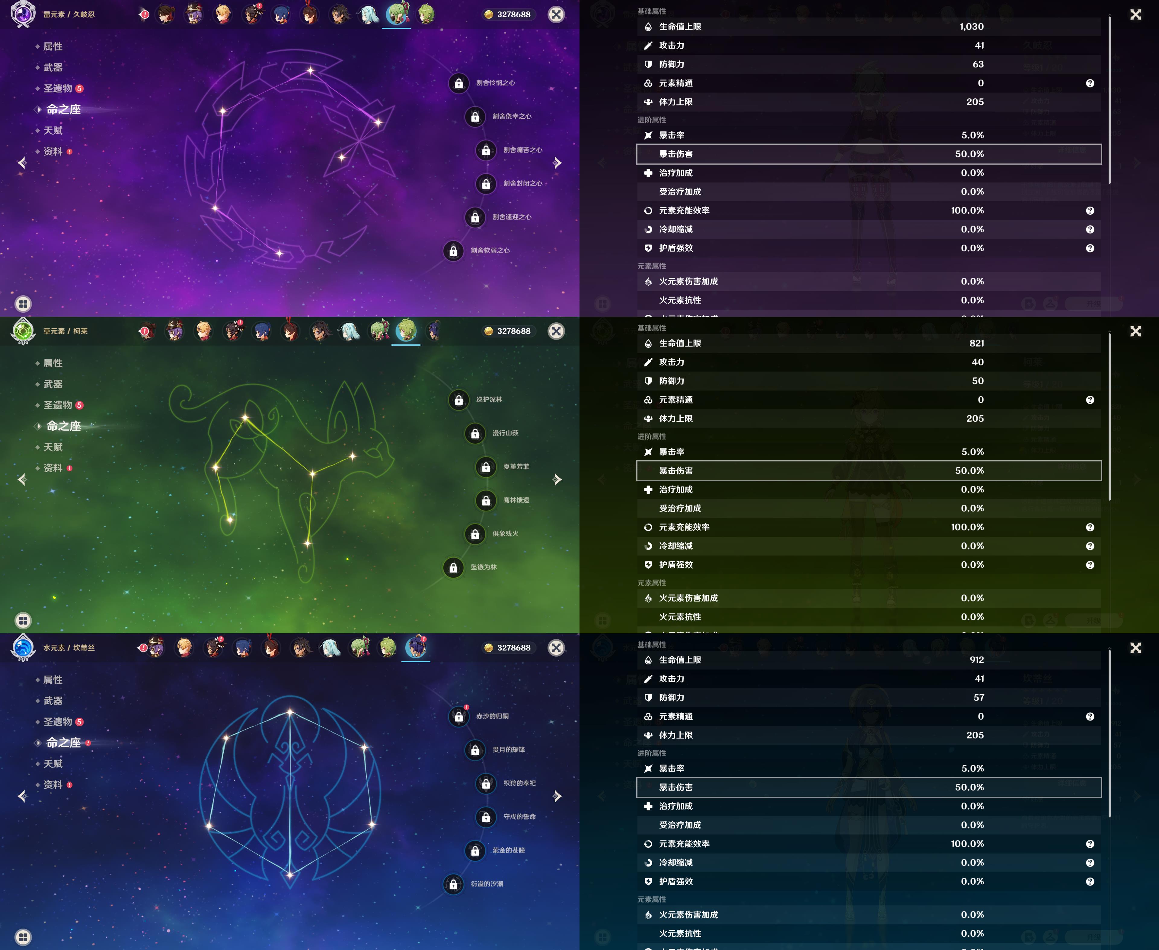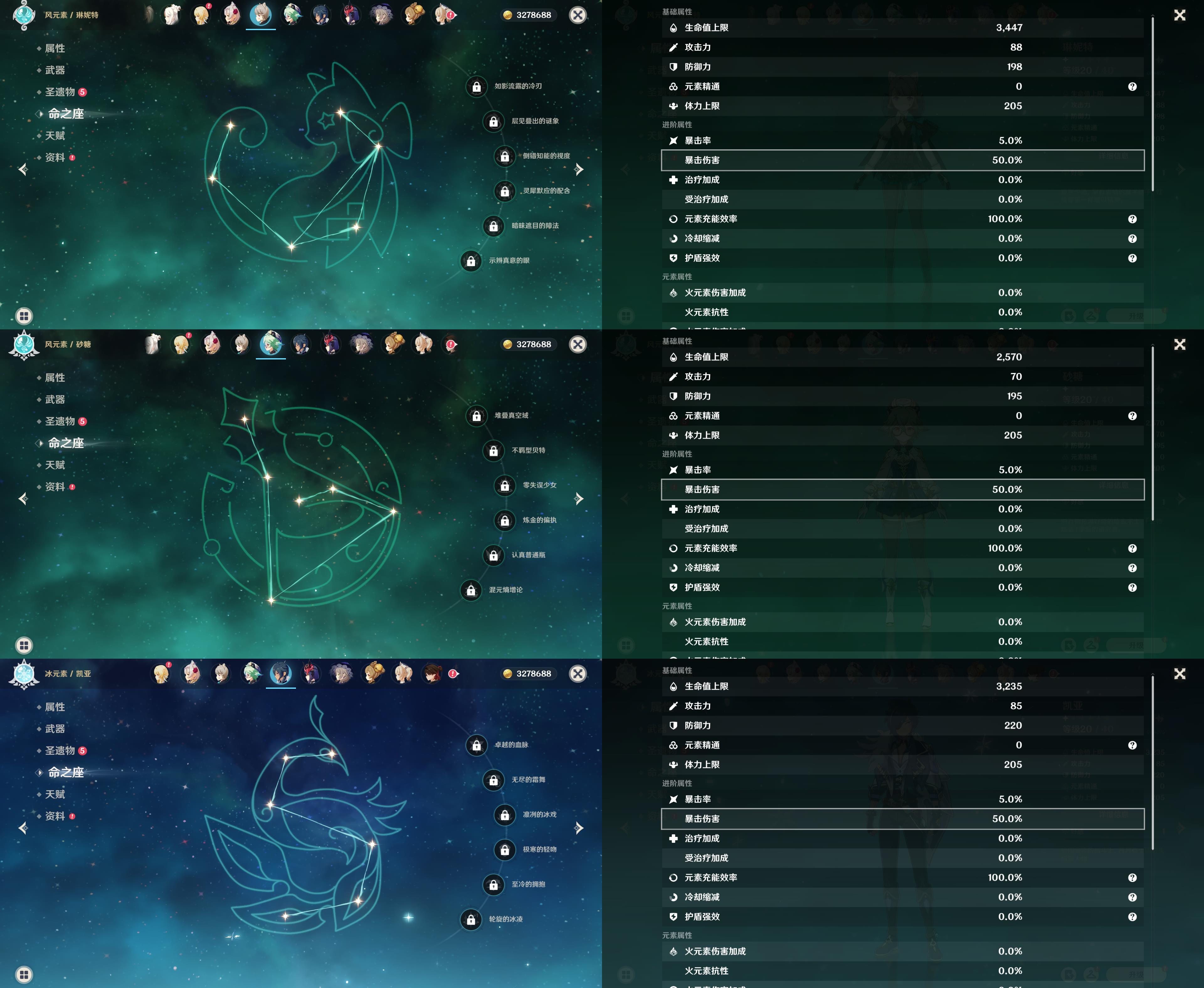 42级/5黄/女主/5个五星角色/迪卢克/基尼奇/七七