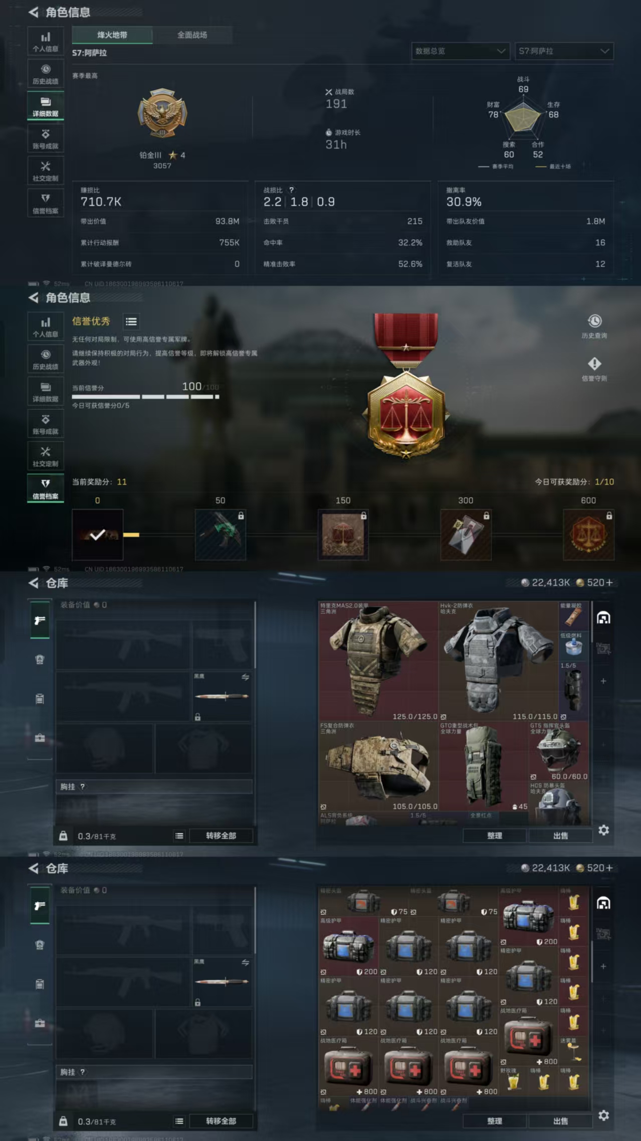 XXSJZ1880三端互通-总价值53.4M-哈夫币22413k-烽火地带等级52-烽火地带【干员皮肤】露娜-金牌射手【近战武器】黑鹰【枪皮】M4A1突击步枪-粉色涂装 M4A1突击步枪-高雅黑 M4A1突击步枪-海色 M4A1突击步枪-繁盛 AKM突击步枪-肃杀 QBZ95-1突击步枪-高雅黑 QBZ95-1突击步枪-海色 QBZ95-1突击步枪-2026 AKS-74U突击步枪-磐石 AKS-74U突击步枪-冰天雪地 ASh-12战斗步枪-繁盛 K416突击步枪-高雅黑 K416突击步枪-冬