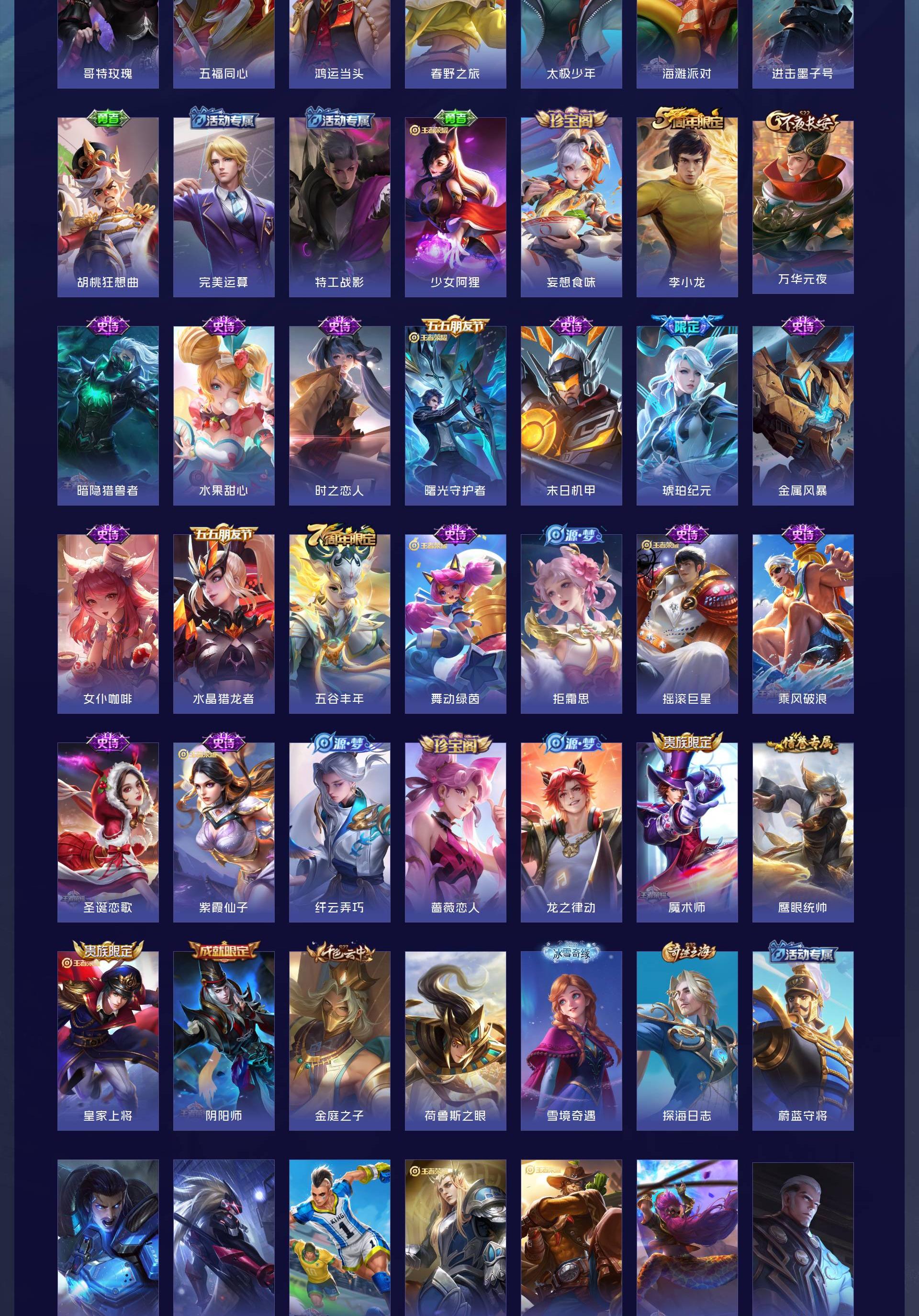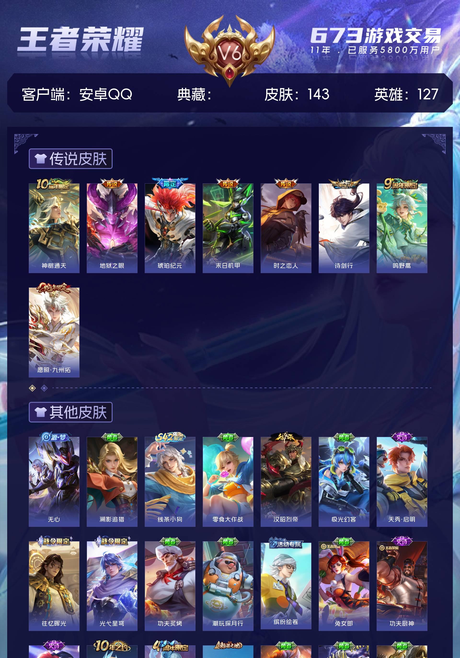 V6 皮肤143 英雄127 永恒钻石 传说8 其他皮肤139