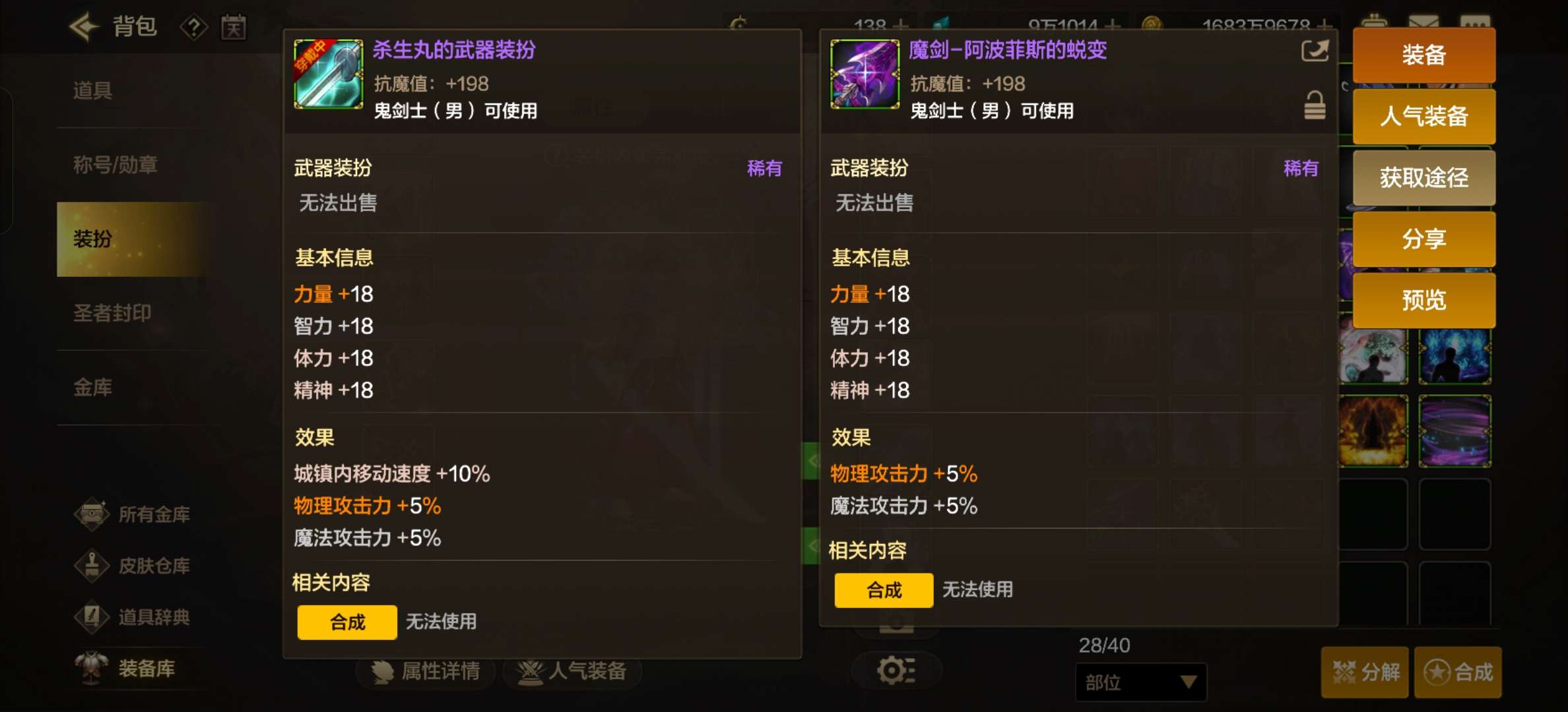 5套天空,7个角色都有荒古,红眼有杀生丸武器还有魔剑。