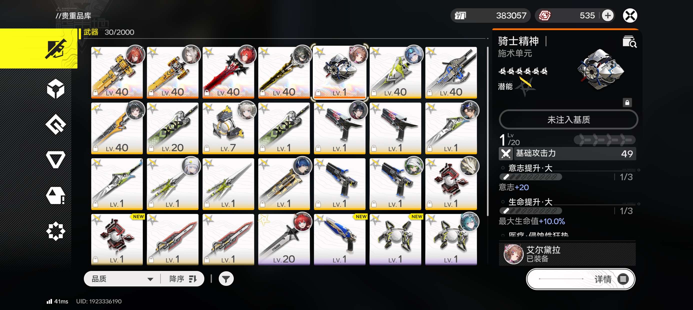 欧皇账号T0火队莱万汀0+1专武,TO物理队一命骏卫,余烬人均六星专武等级35,主线只到第一章进程3