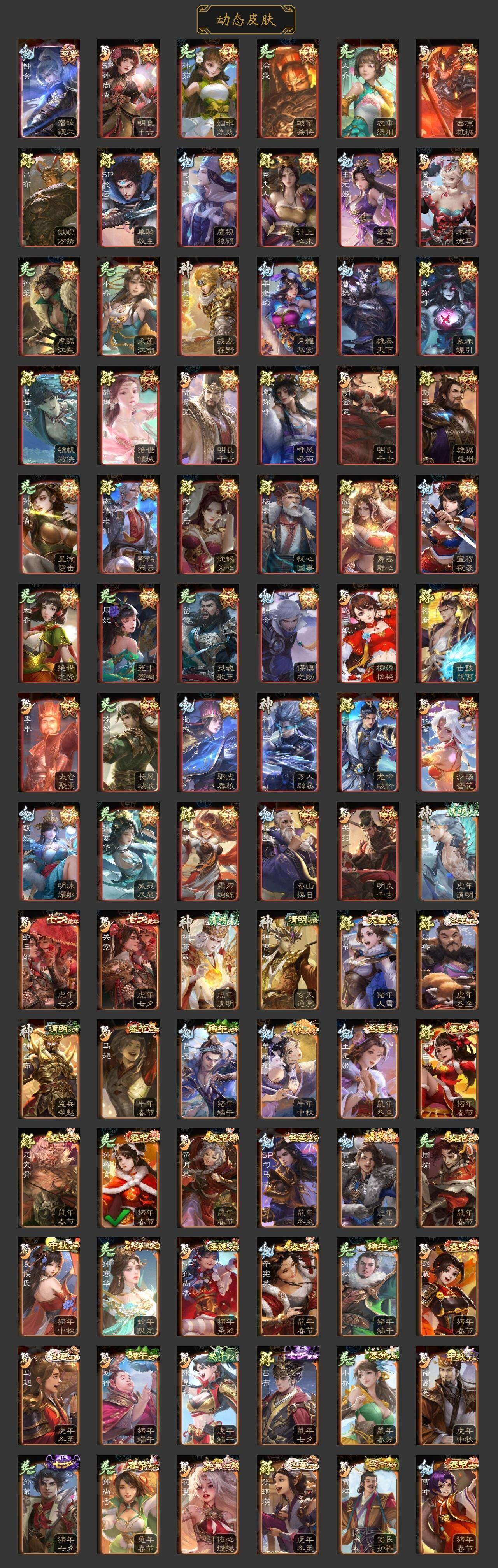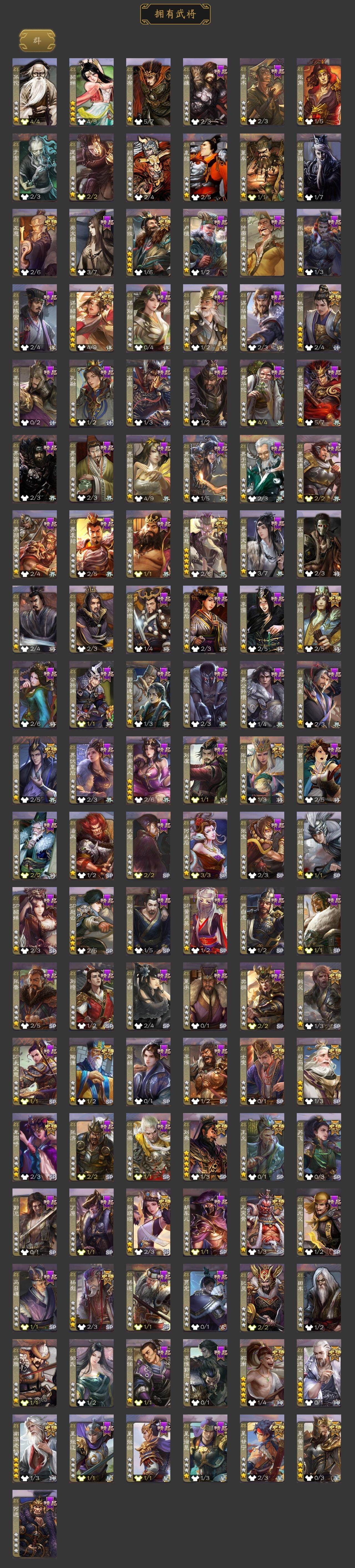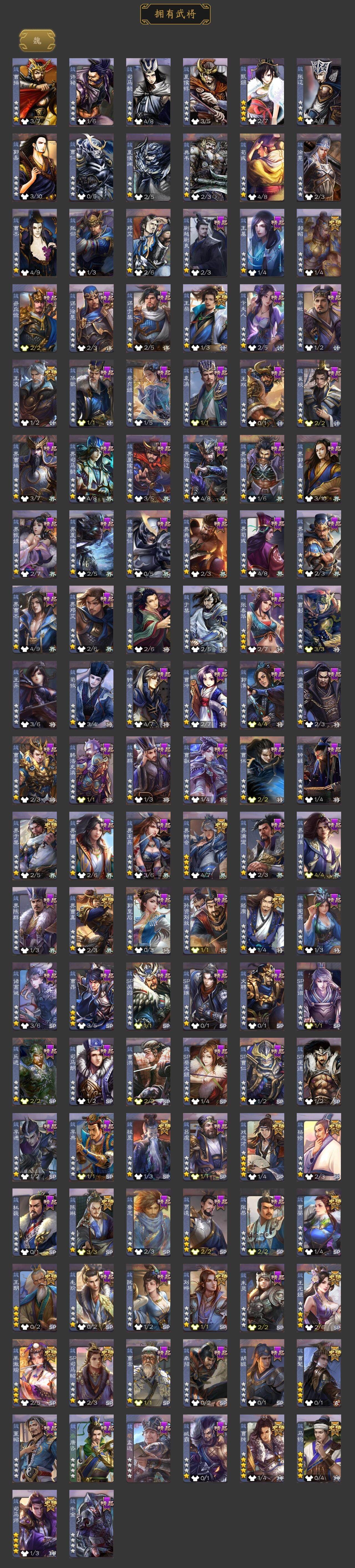 神曹操,神吕布,神赵云,神司马懿,神刘备,神甘宁,神张辽,神郭嘉,神太史慈,神荀彧,神诸葛亮,神鲁肃,SP司马昭,曹髦,王粲,杨修,羊徽瑜,王元姬,王凌,王朗