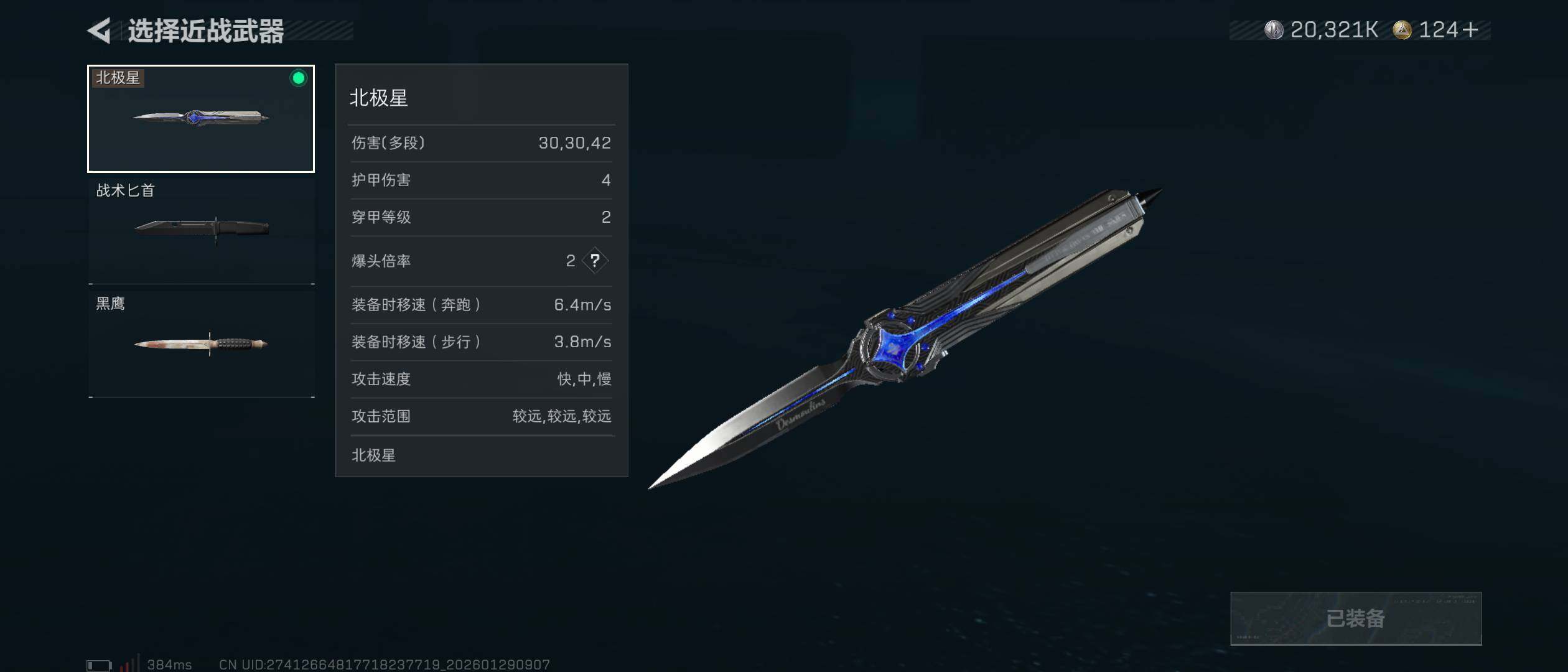 【近战皮肤】:近战-北极星,近战-黑鹰
