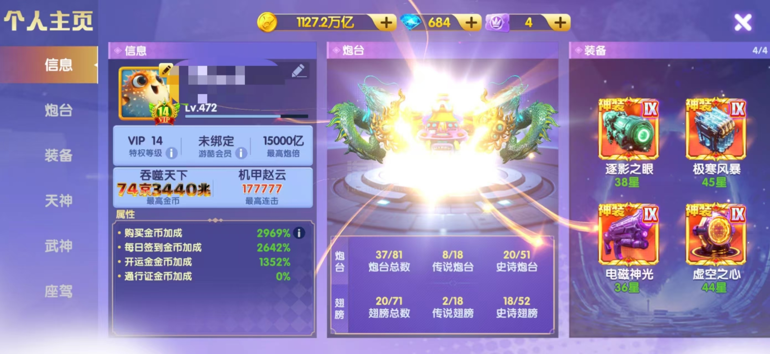 官方Q v14 2969加成 1.5万炮 17武神 细节看图 感兴趣咨询