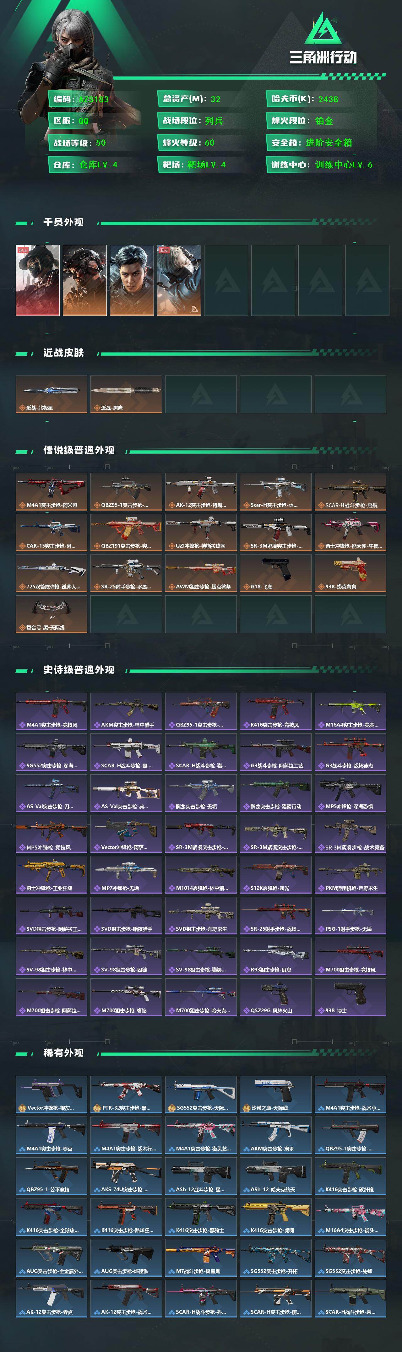 【AZS183】32m总资产-2438k哈伏币-60烽火等级-铂金-50战场等级-列兵