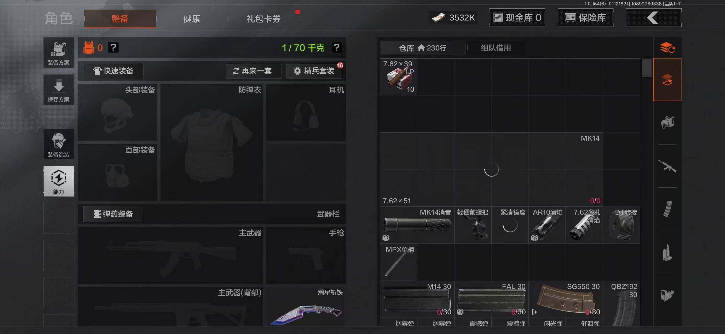 【AQZG956】等级:30/段位:大师/仓库价值(百万):7.8/柯恩币:3532629/热能武器补牢/NOCs-7折刀/胜利军刀/瀚星斩铁/工兵铲/噤声者吉利服/伦琴幻影FAL/告丧夜曲AR57/旗帜AEK/利齿风暴MPX/棱光裂变QBU191