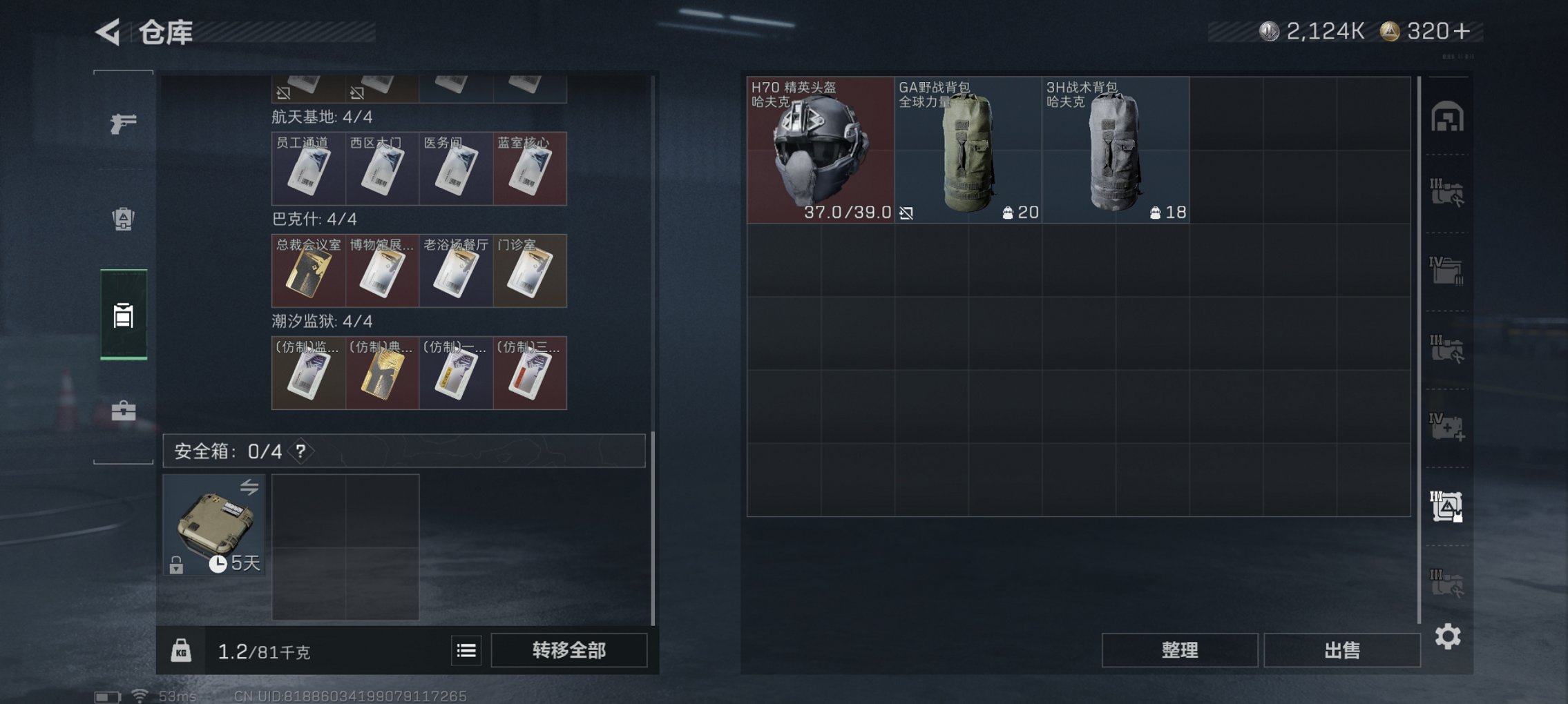 【红皮骇爪】总资产107M,哈夫币2,124K,行动等级:60