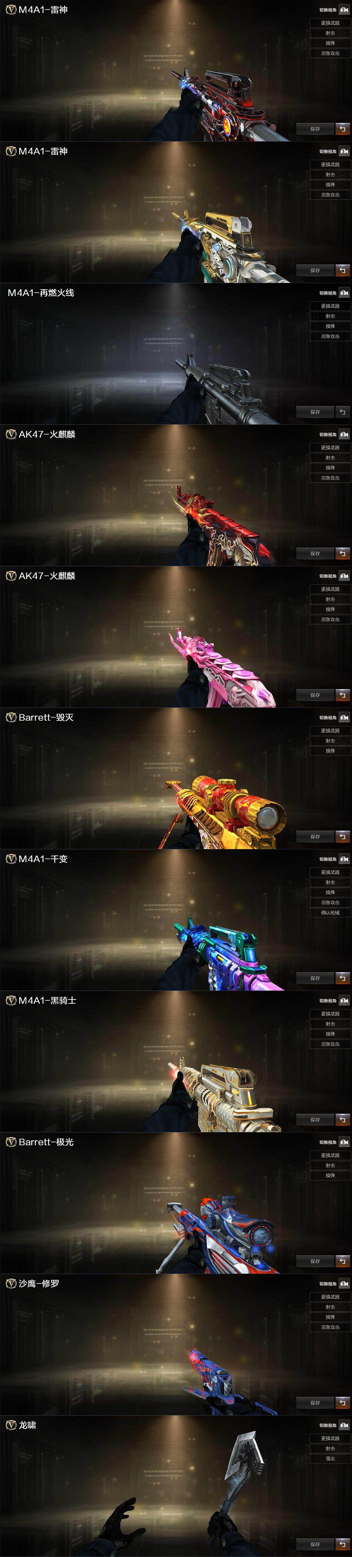 【皮肤】:雷神-暗月,雷神-虎将,M4A1-再燃火线,火麒麟-平天大圣,火麒麟-心动糖果,毁灭-黑大圣皮肤,M