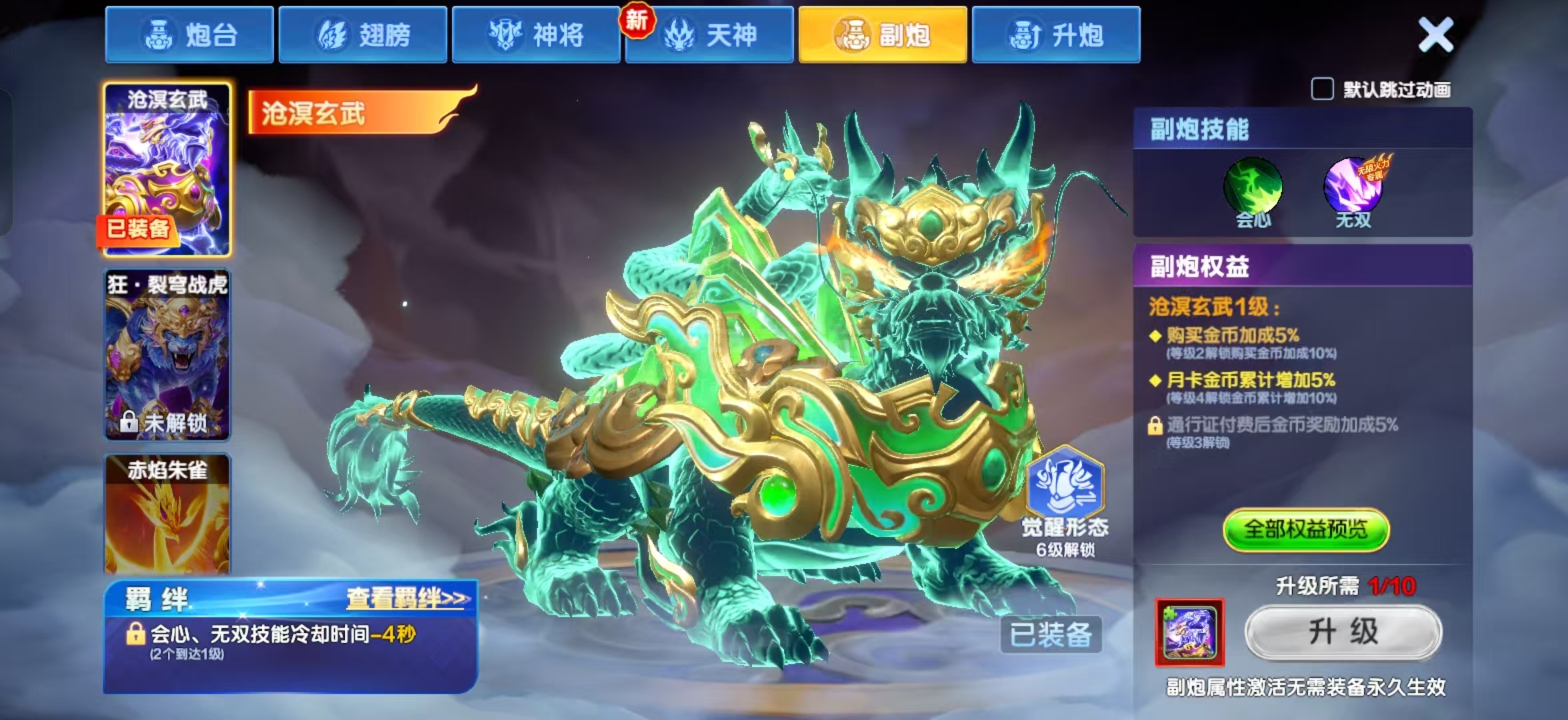 准s1文字号,永久天神副炮,400万金币,狂暴已开,双卡都在,开通月卡,详情如图