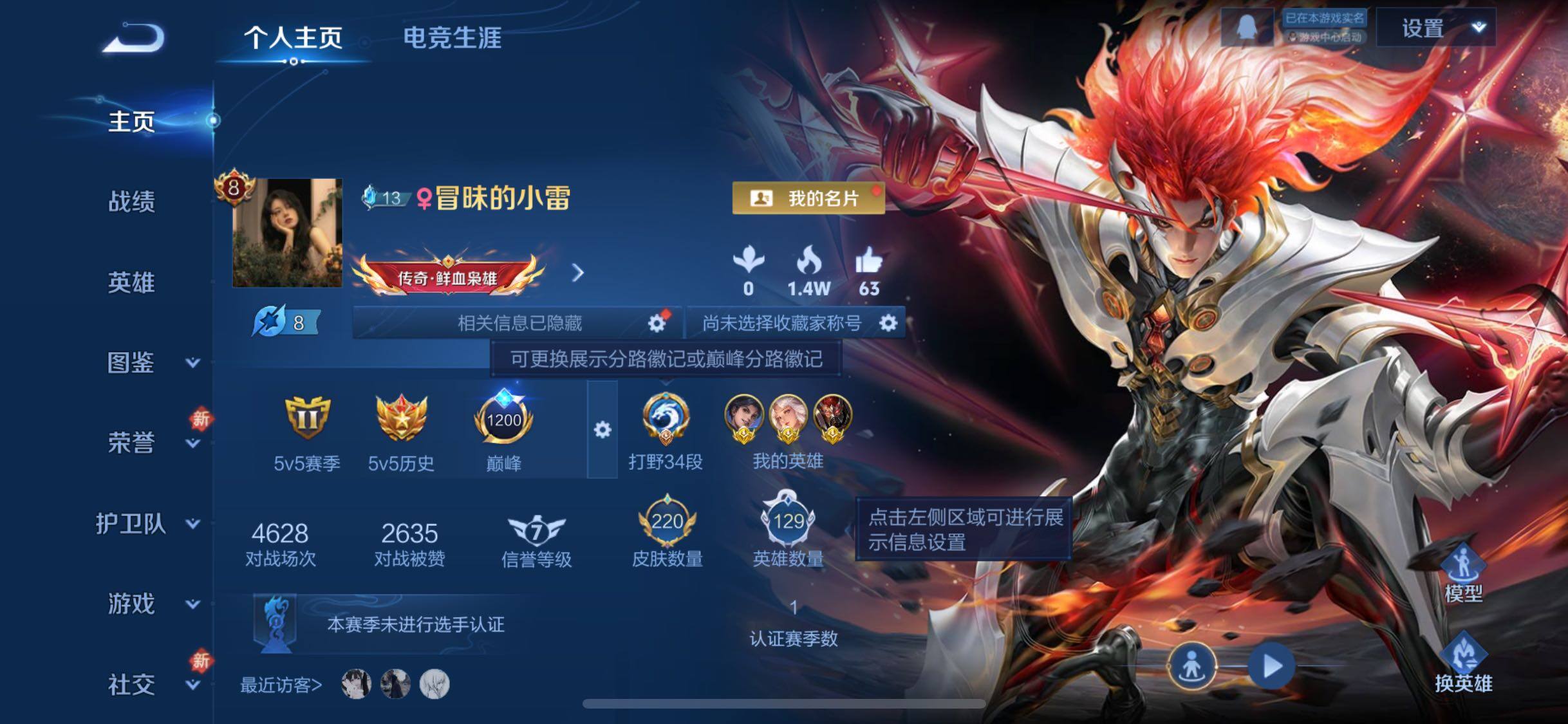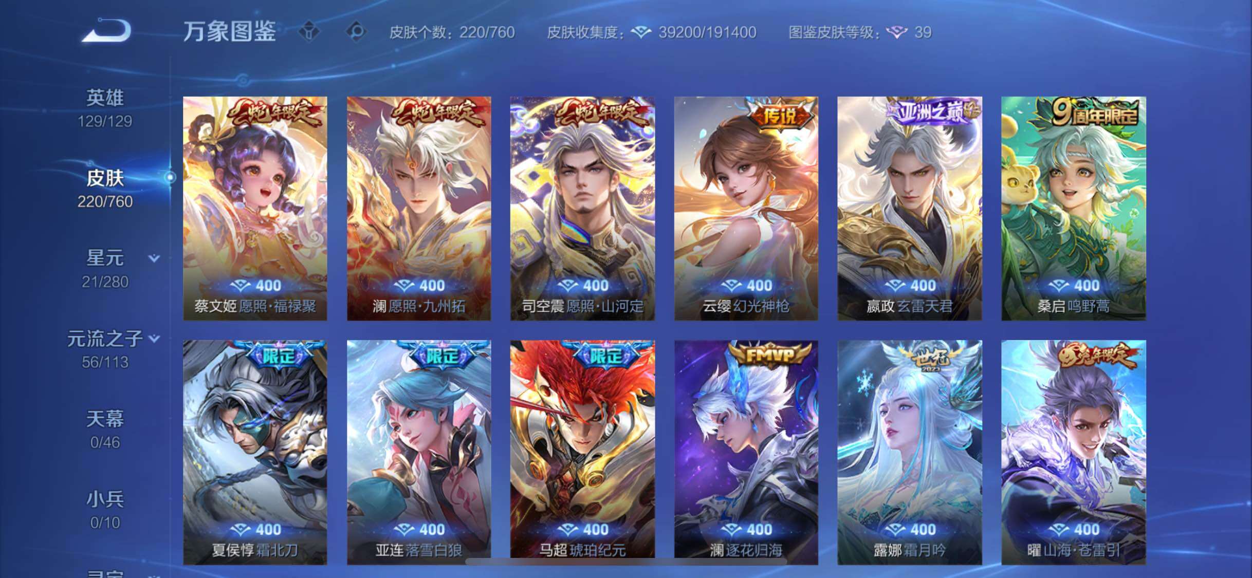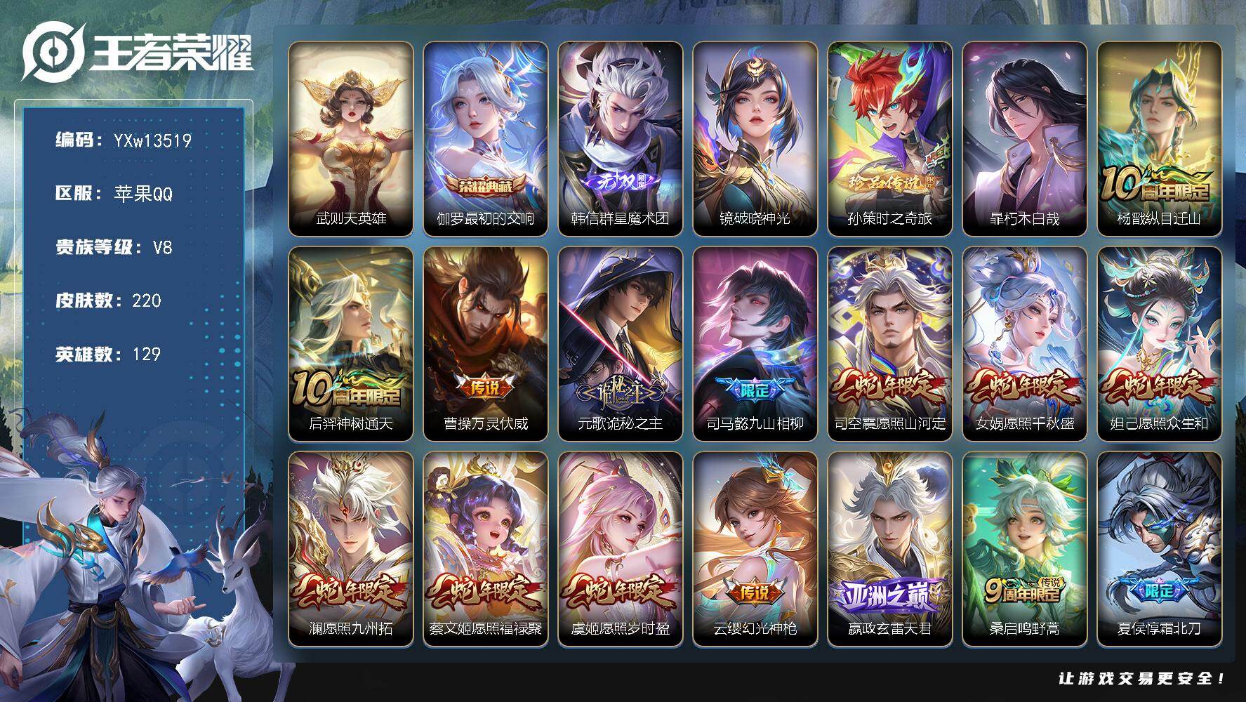 落雪白狼·霜北刀·万灵伏威·霜月吟·永曜之星·至尊宝·九山相柳·可二次】YXw13519-苹果Q-129英雄-220皮肤-7王者印记-170铭文-贵族积分8w【贵族8】【2典藏·1无双·2珍品·1星
