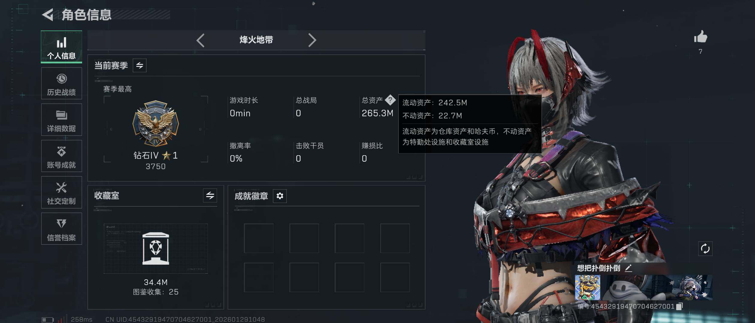 265m总资产-139466k哈伏币-60烽火等级-钻石-9战场等级-列兵