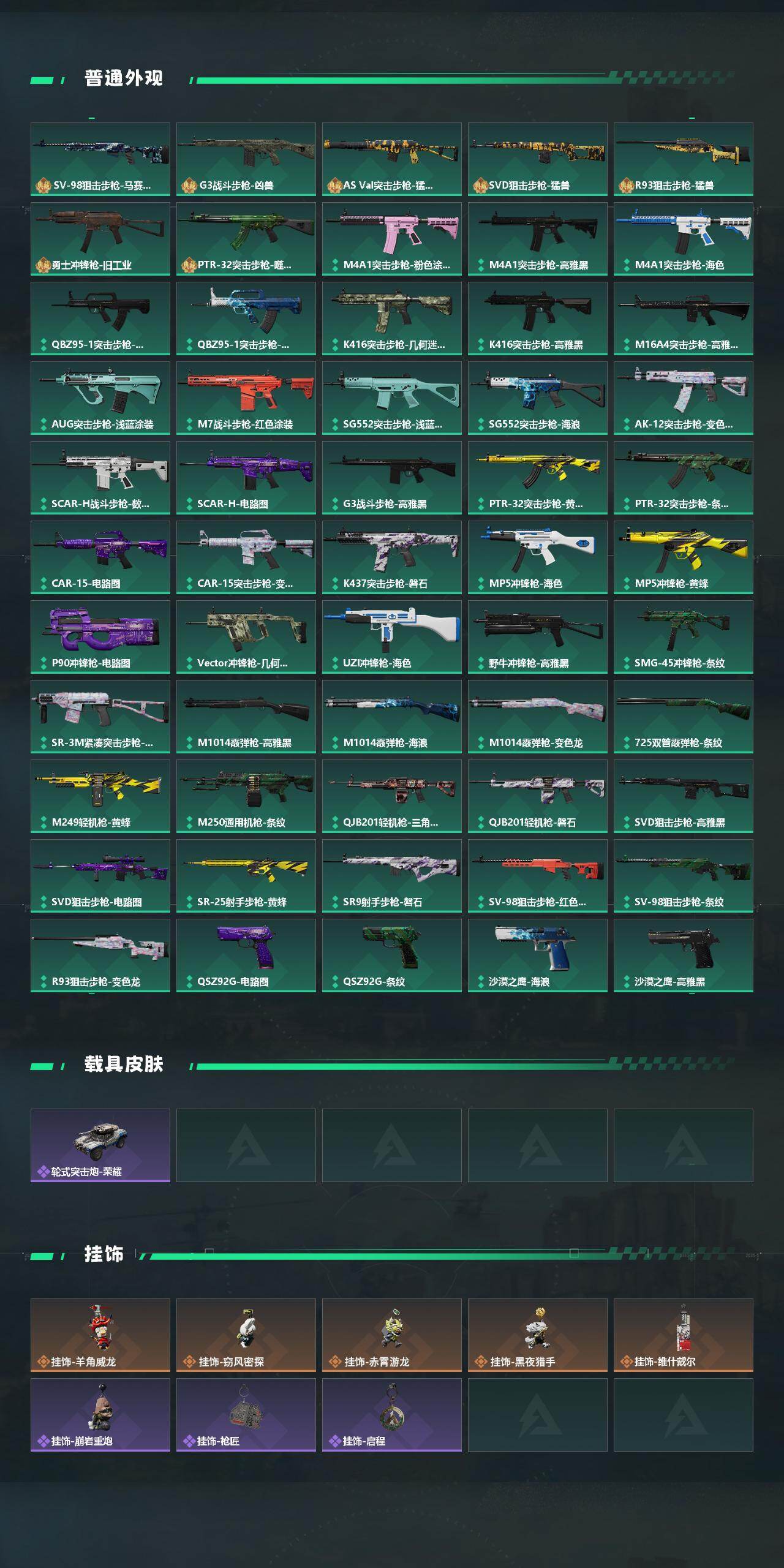 【传说外观】:M4A1突击步枪-阿米娅,ASh-12战斗步枪-鹅鸭杀,M7战斗步枪-巳蛇,SG552突击步枪-运动员,