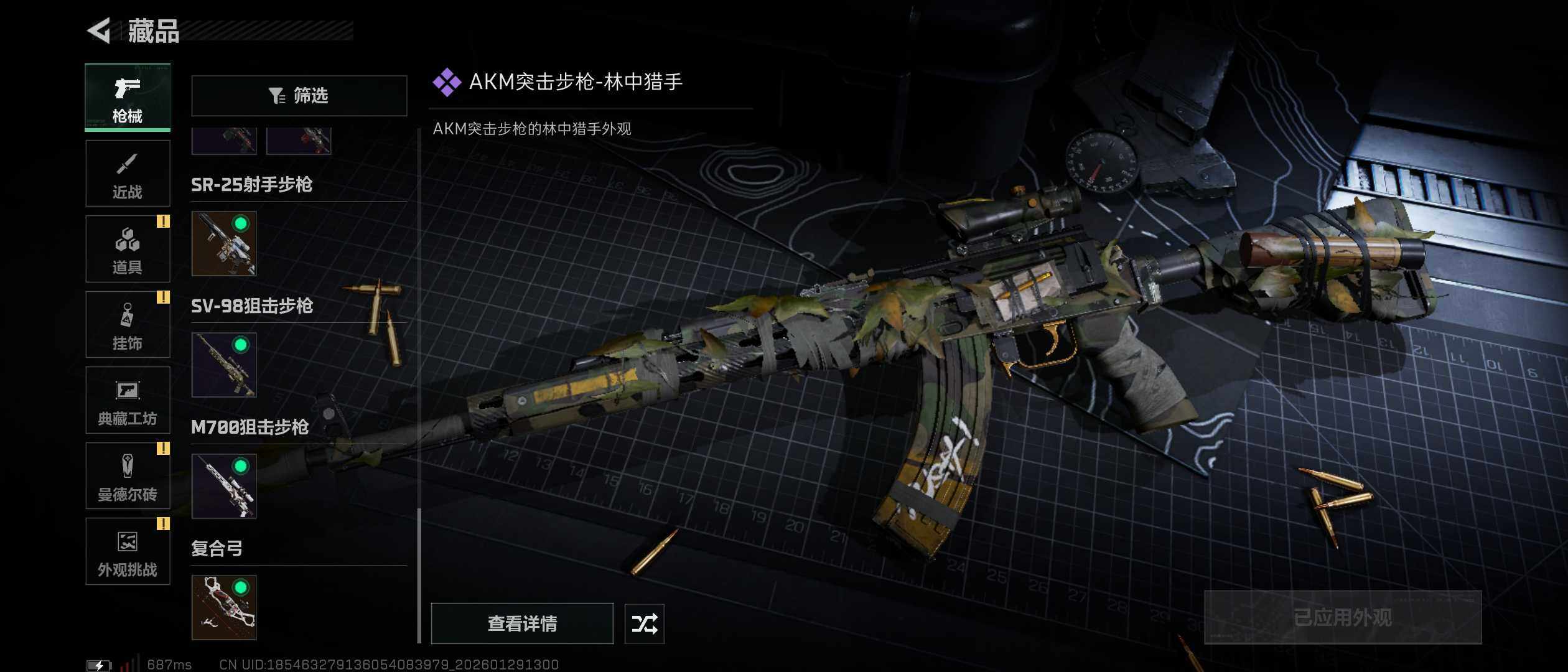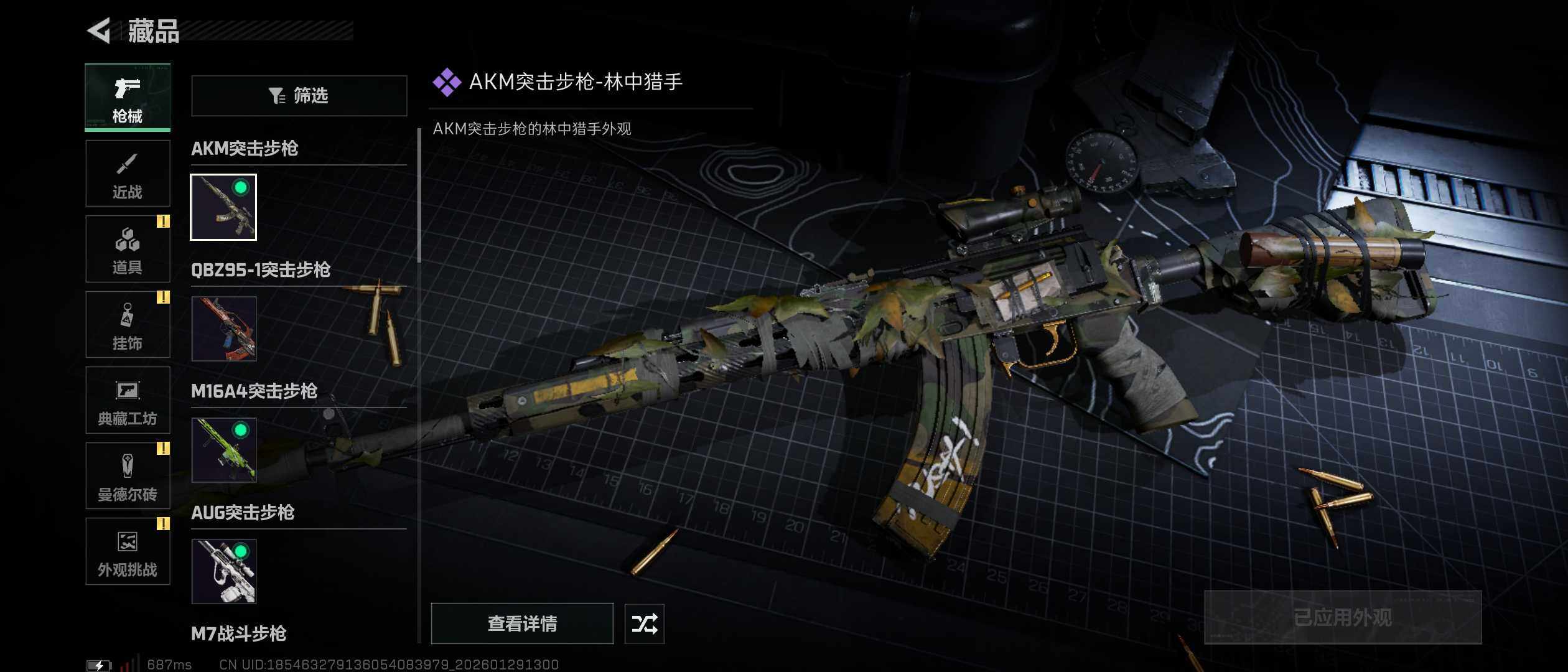 【史诗外观】:AKM突击步枪-林中猎手,QBZ95-1突击步枪-曙光,M16A4突击步枪-竞赛选手,AUG突