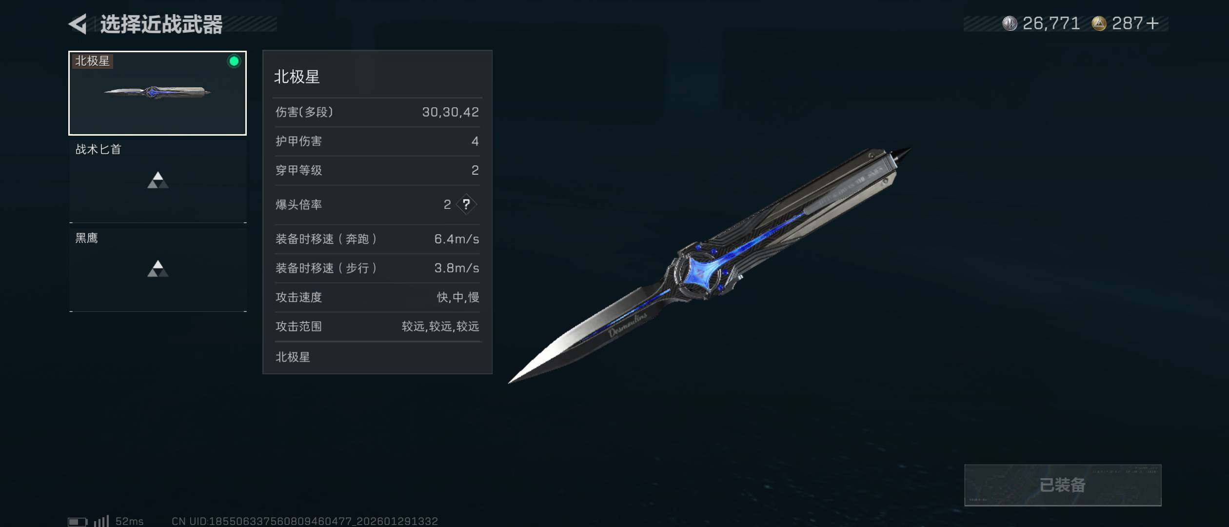 【近战皮肤】:近战-北极星,近战-黑鹰
