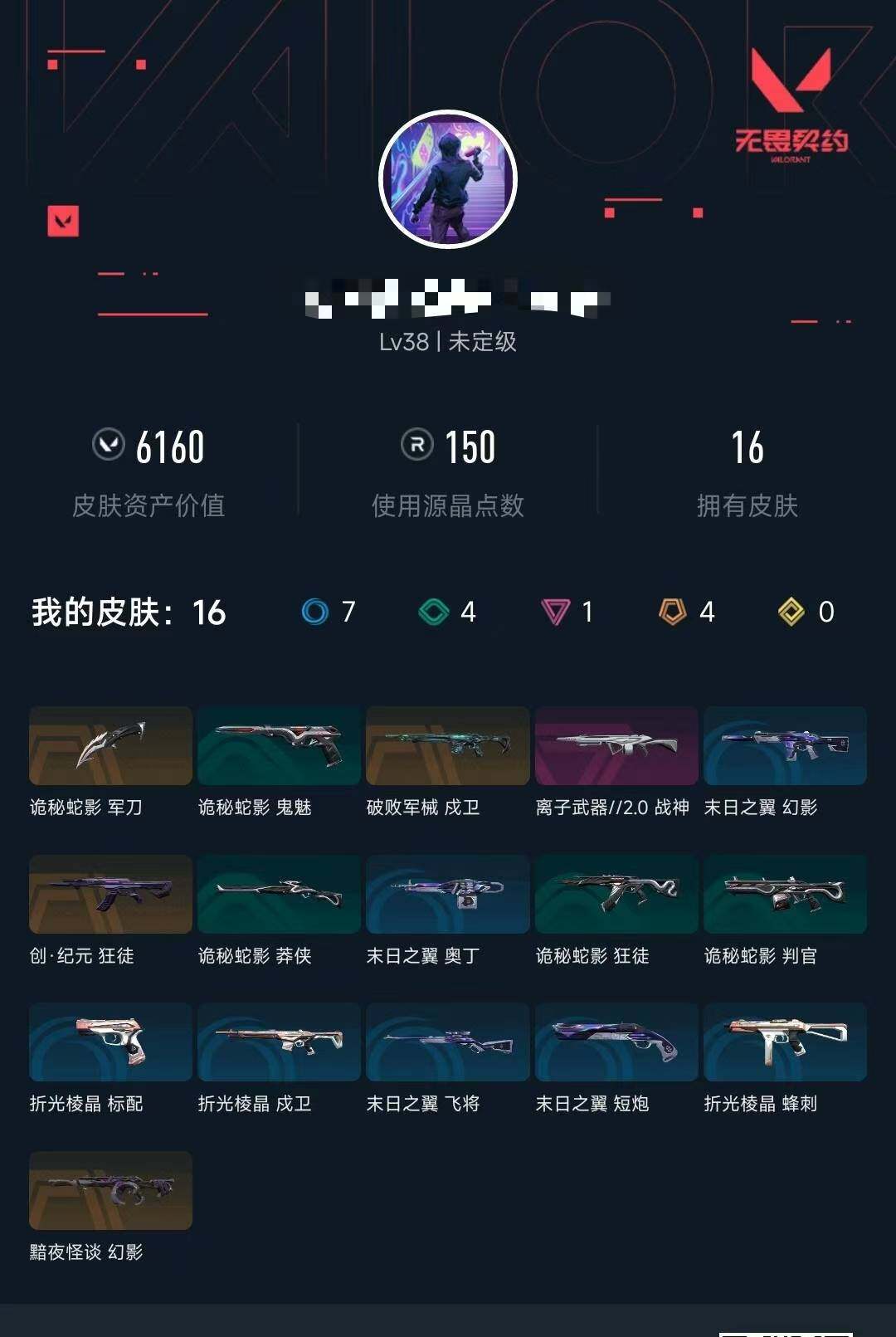 终极*4/卓越*1/皮肤*16/等级*38/段位:未定级/幻棱/