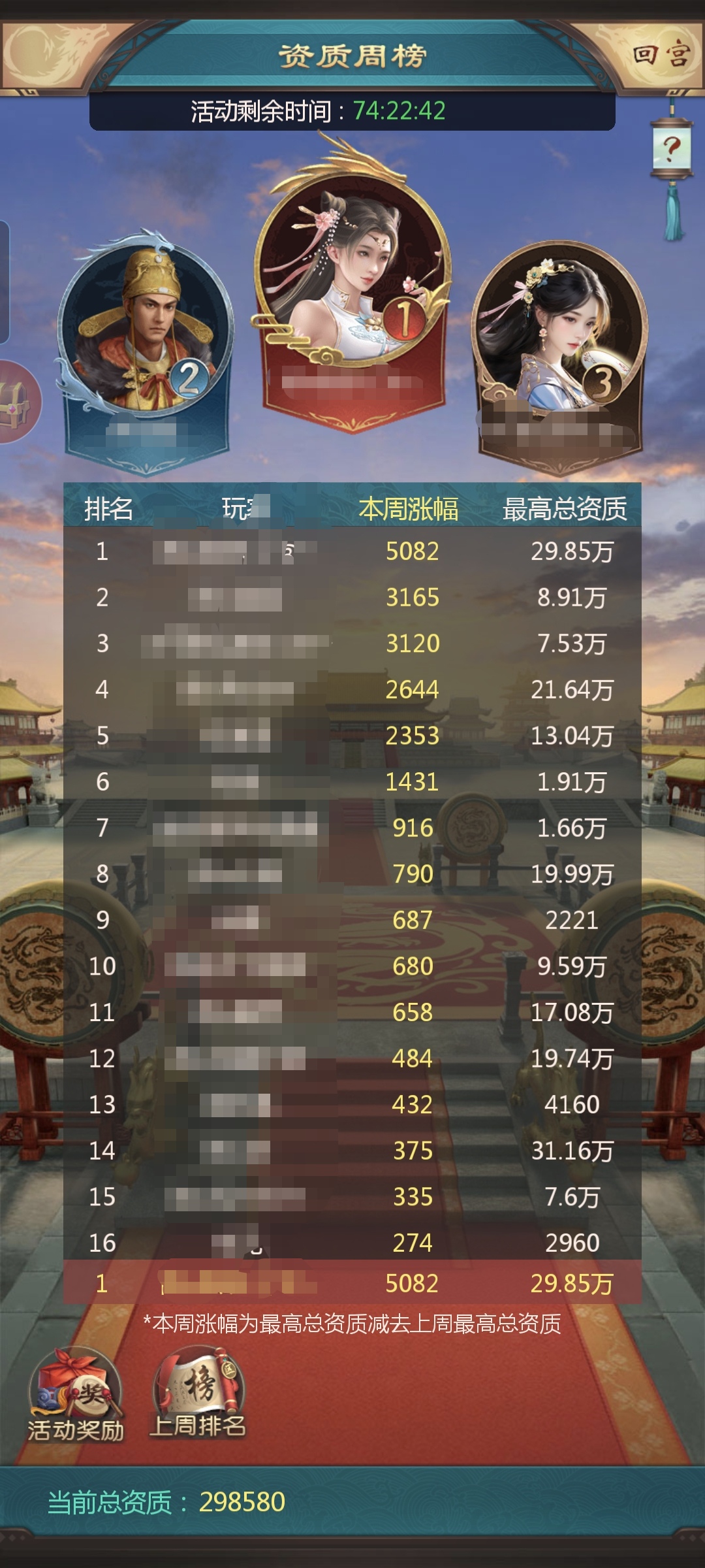 30万总资70万主妃,主臣国士榜第一,v13后续6折,资源还行加200钻石,本区重生国力快