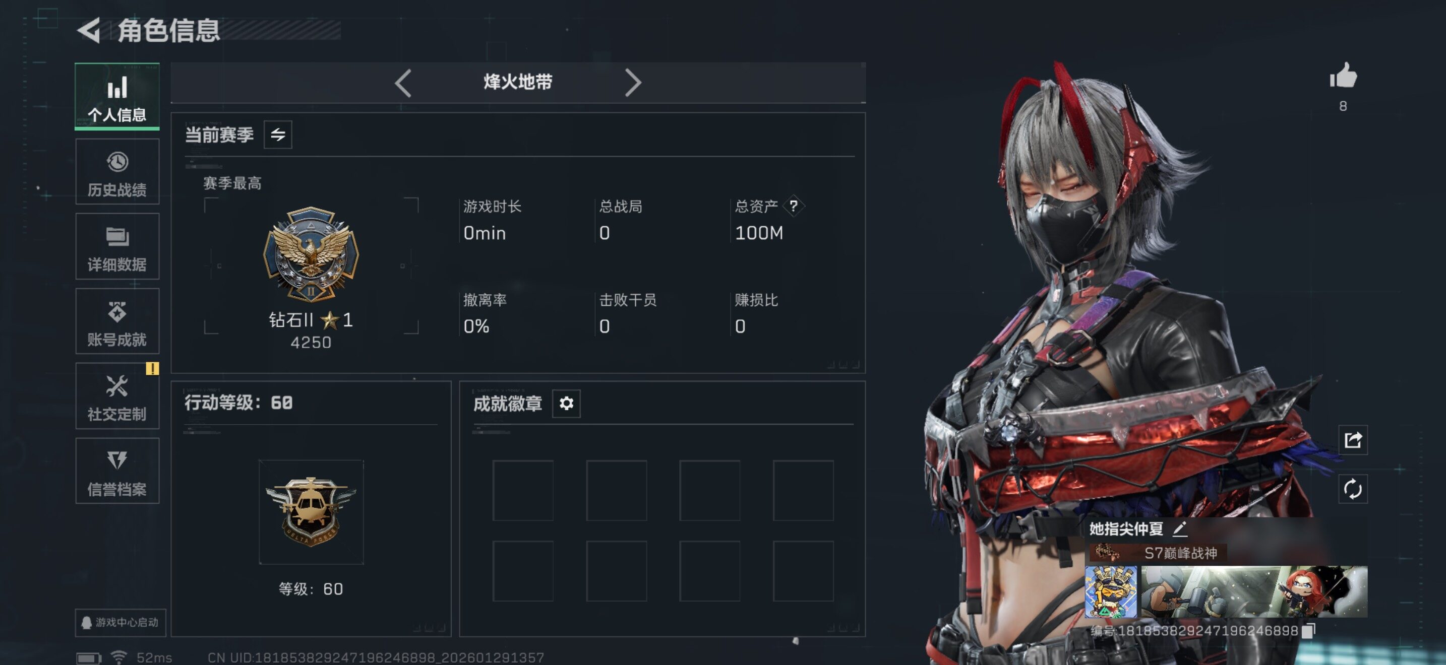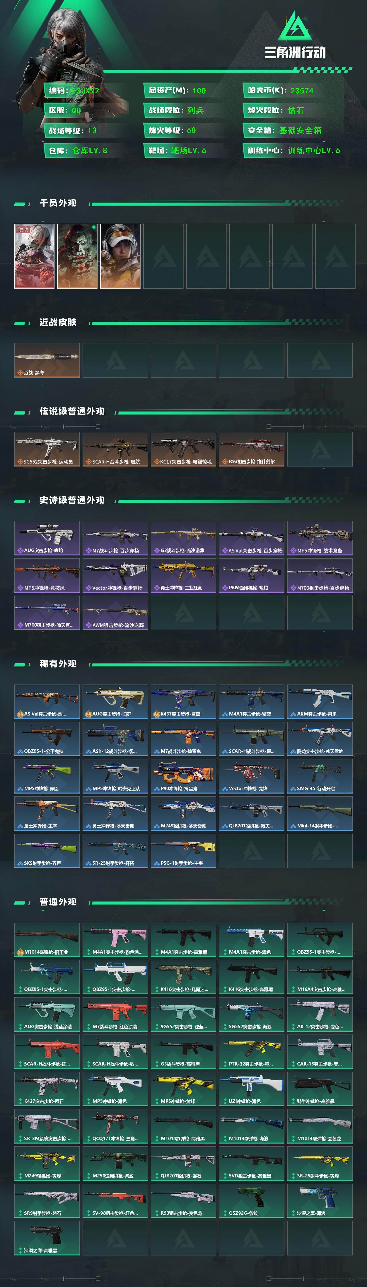 【特价出售/店主推荐】100m总资产-23574k哈伏币-60烽火等级-钻石-13战场等级-列兵