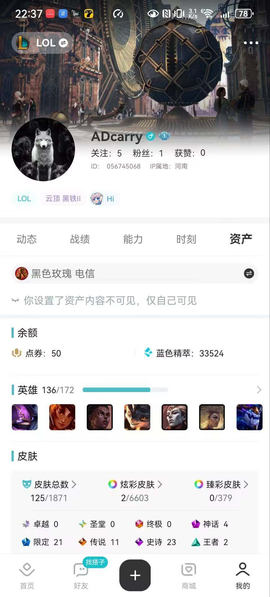 可二次【特价出售/店主推荐】未定级段位-136英雄-125皮肤-2炫彩-0终极-4神话-21限定-11传说-23史诗