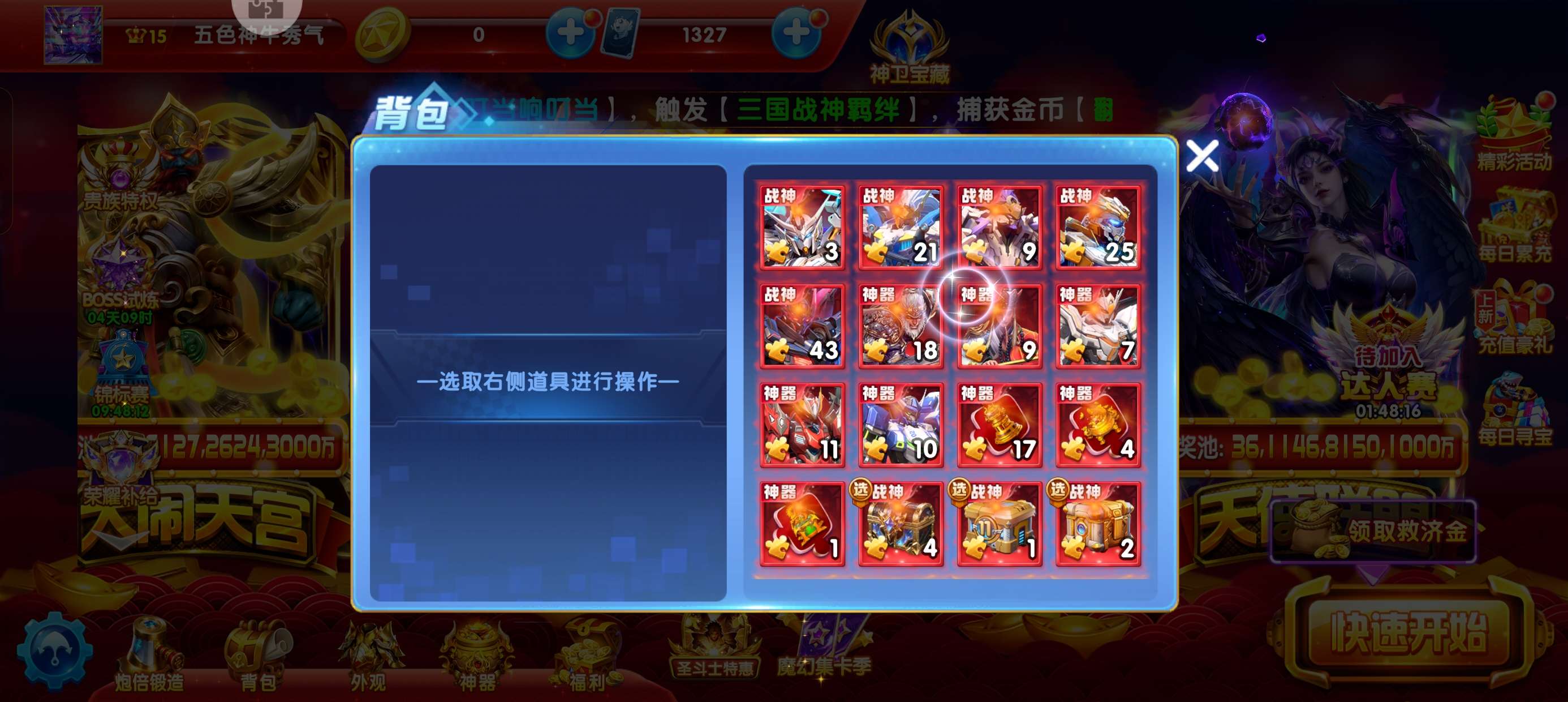 战神齐全,目前纯救济8000万,炮台280,升升炮台和圣器随便过兆。有意私,无需经纪人