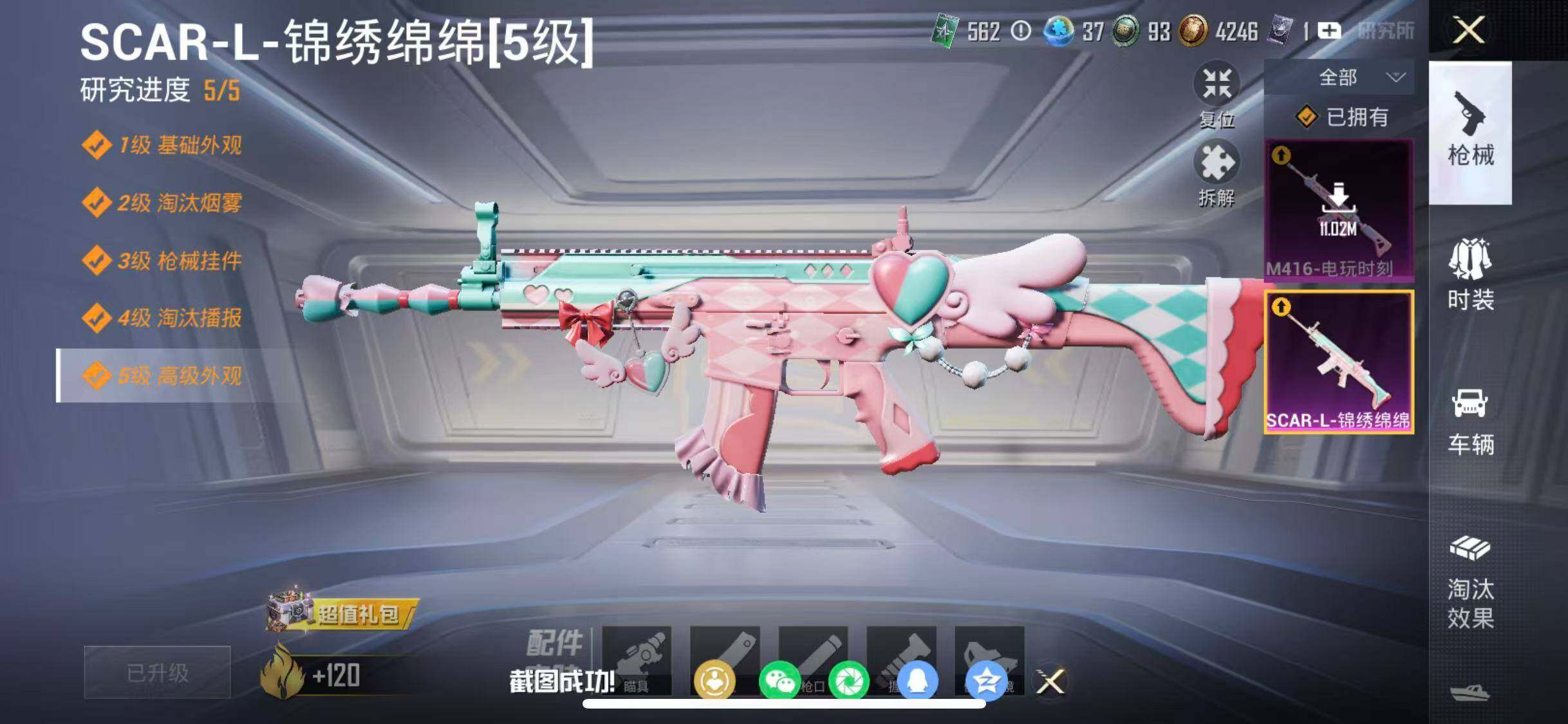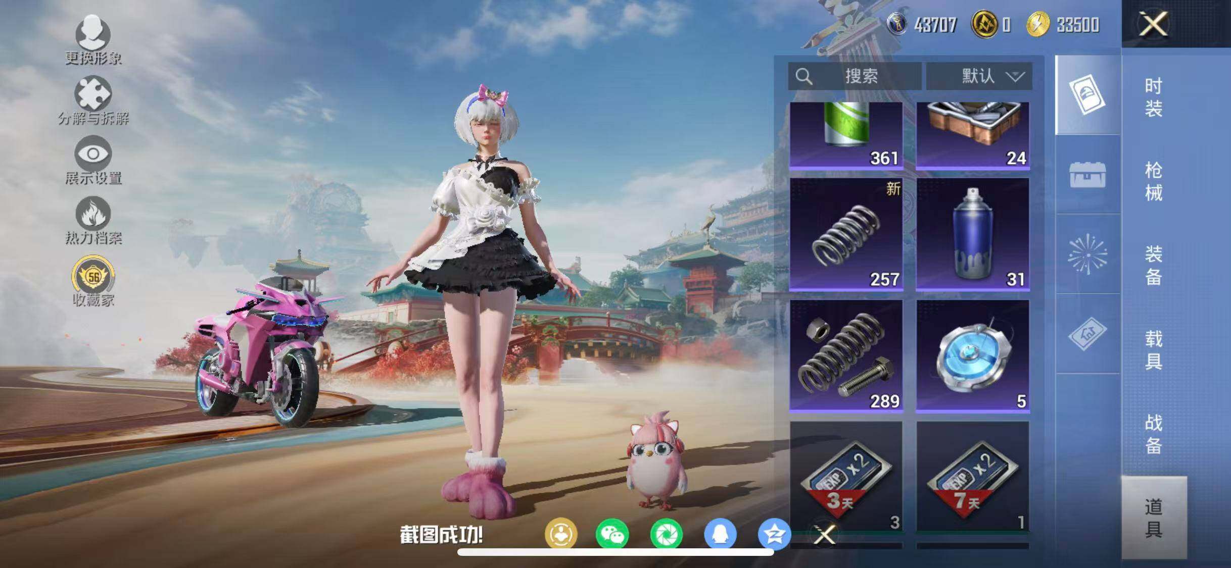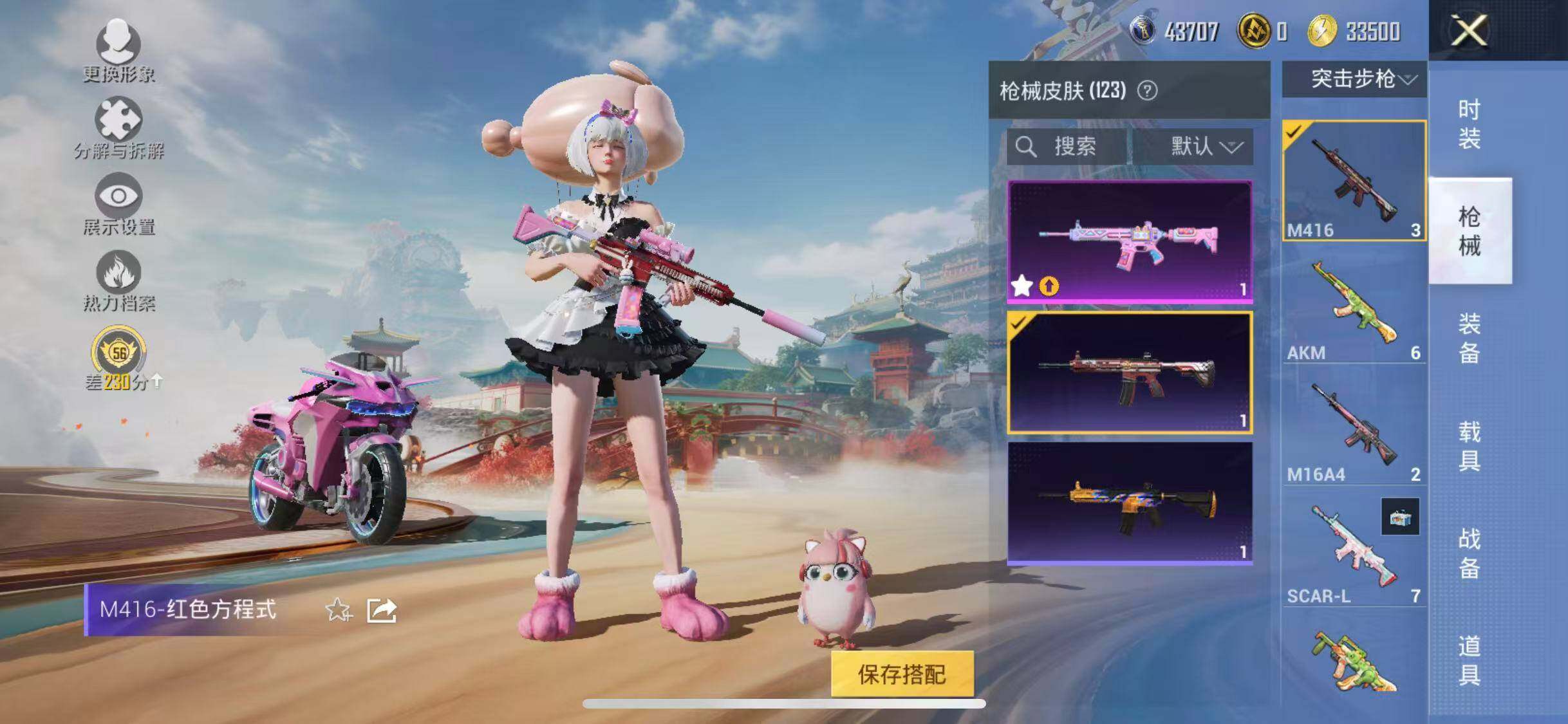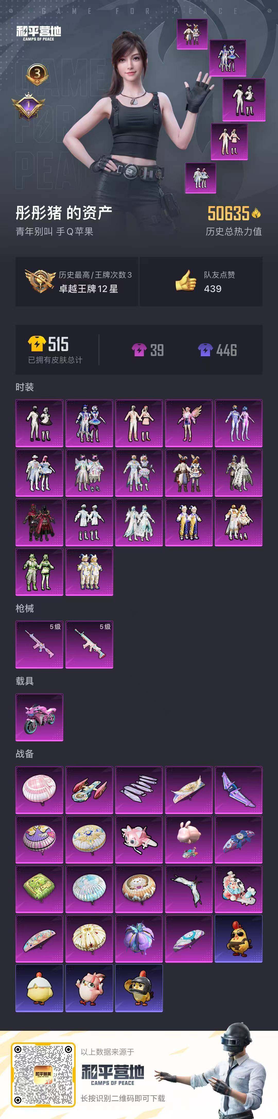 苹果 手Q-17粉装-2特效枪-1载具-6粉色飞行器-50635热力值-3王牌印记-125套装-122枪皮