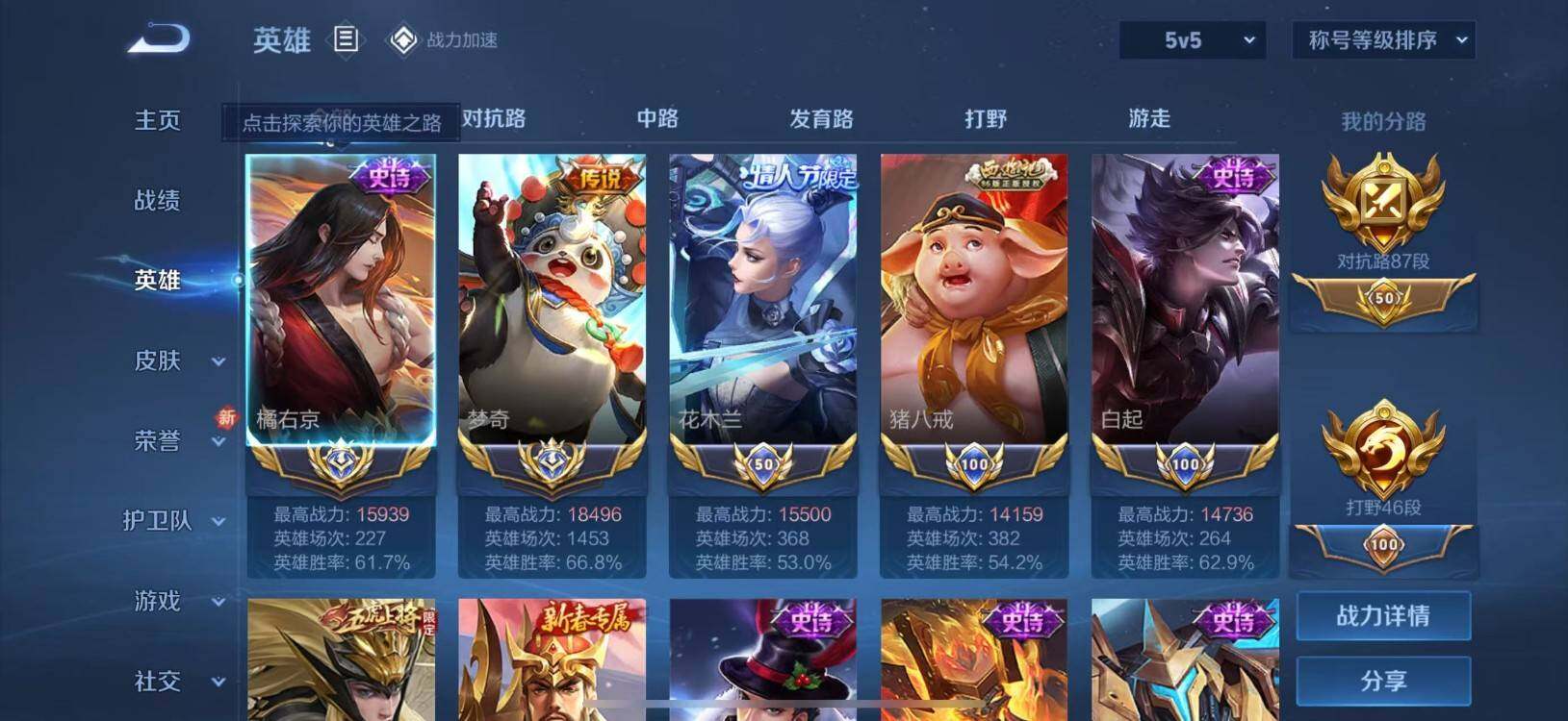 【商品标题】:87段对抗路,2大国3小国,1.6w战大国橘右京,1.8w战大国梦奇,1.5w战小国花木兰,1.4w战小国猪八戒,1.4w战小国白起,一堆万战省标,百星印记,魔方号,苹果Q-V0-荣耀黄金II段位-111英雄-145皮肤-0典藏-0珍品无双-0无双-0珍品传说-9传说-52史诗