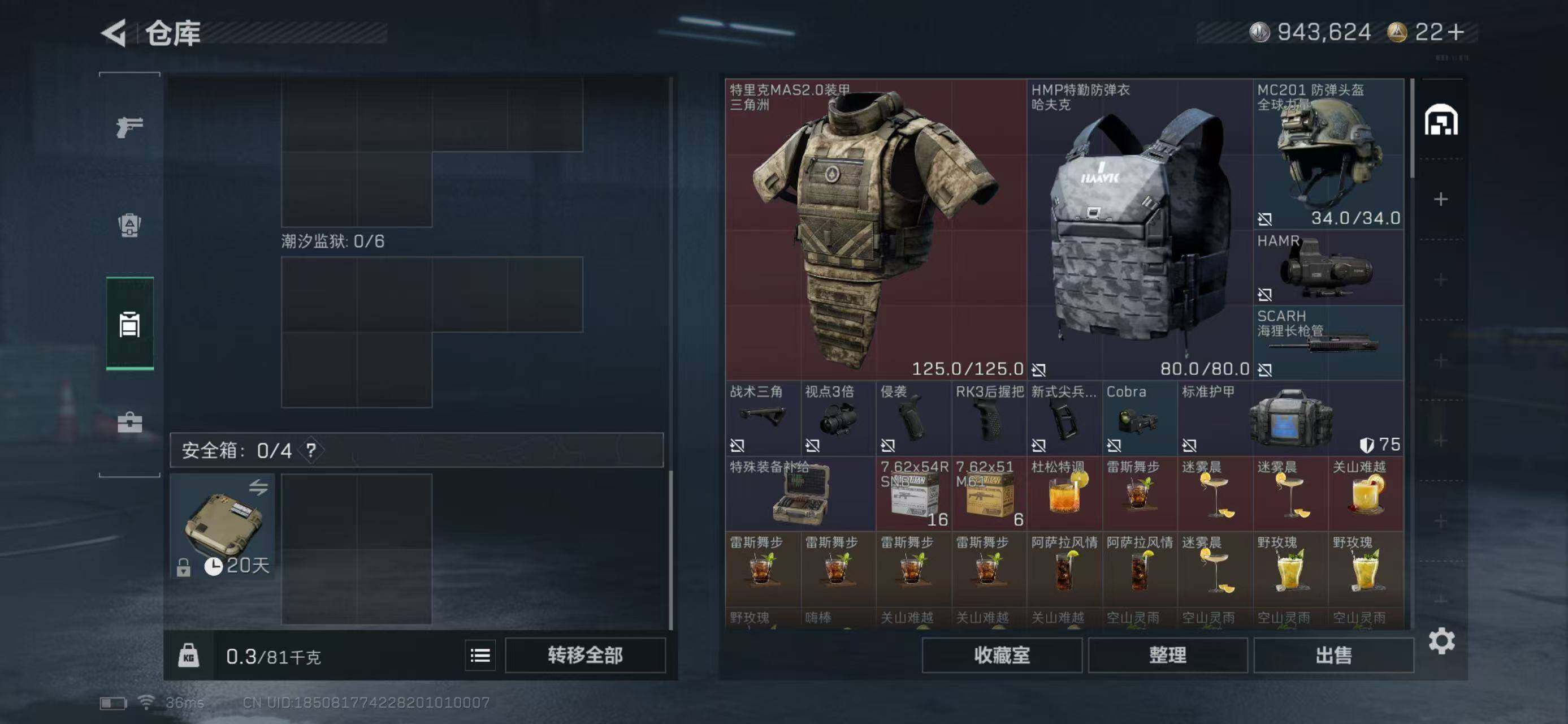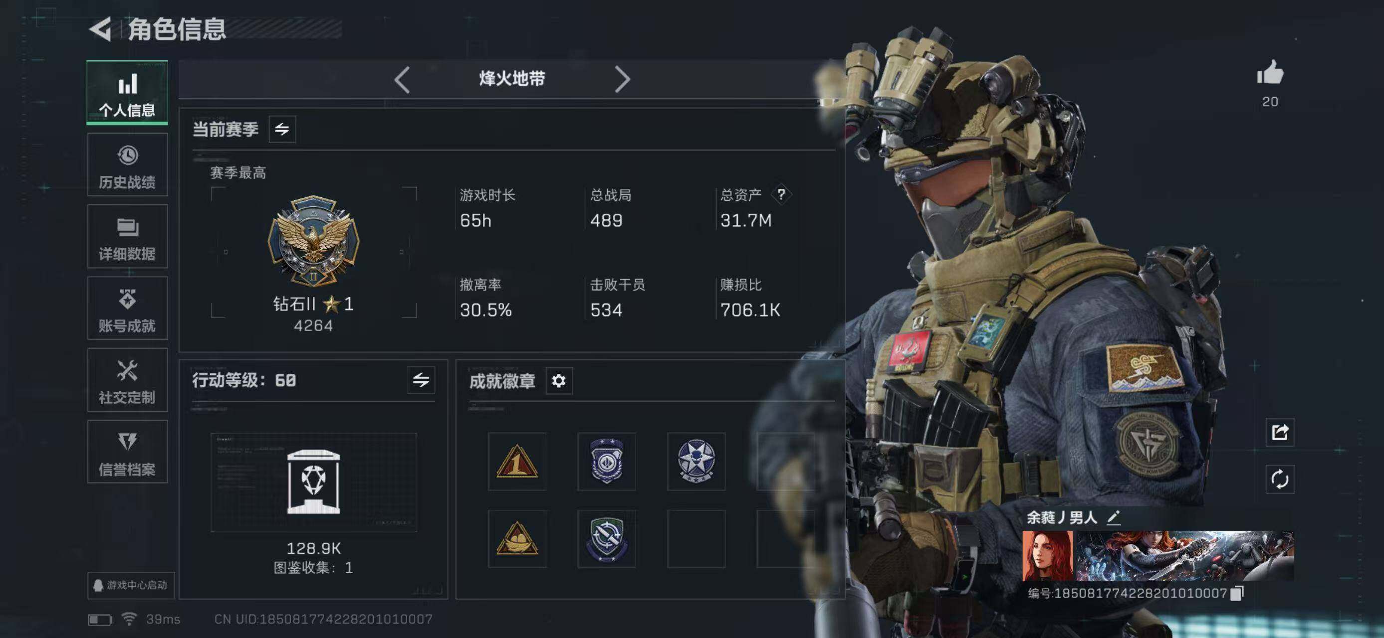 LJ4157总资产31.7M哈弗币940K近战武器-赤枭,近战武器-怜悯,近战武器-信条无无无AW子弹0发三角币22仓库LV.8进阶安全箱靶场LV.5训练中心LV.6无,蜂医-送葬人·无题密令,近战-赤枭,近战-怜悯,近战-信条